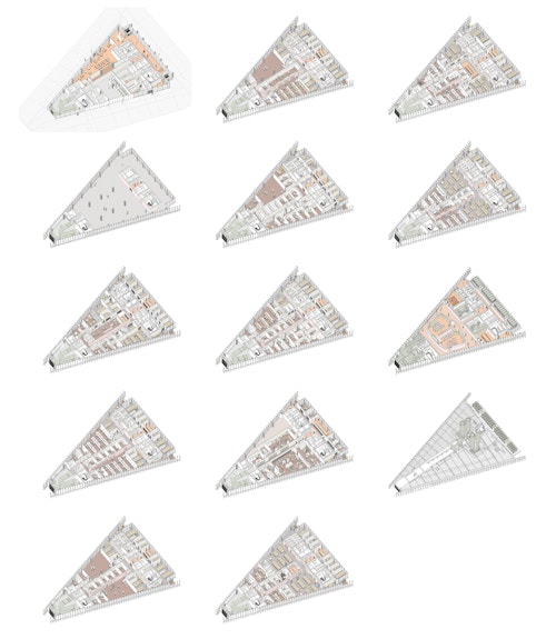 At the Sir Michael Uren Building at Imperial College London, architecture, servicing strategy and structure all work as one in this way (even when the site we inherited is triangular). But this approach allowed for twelve different layouts which are tailored to the needs of different research groups. From the Dementia Research Institute, which needs a simulated studio flat, to Musculoskeletal Medical Engineering needing Gait Analysis clinics and making facilities for prosthetic limbs to wet and tissue culture labs for Regenerative Medicine to more traditional office spaces for the statisticians and policymakers at the School of Public Health. The Henry Royce Institute brings advanced materials and clean rooms into the mix, providing a full research-to-manufacturing cycle of bespoke thin film devices.