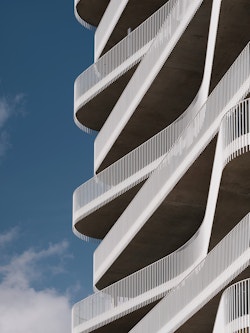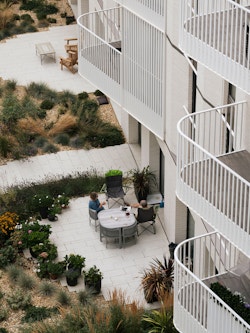141 homes and a new cafe create this new compact neighbourhood on a quintessential English seafront, around a new public space. In both form and scale, Bayside draws references from its littoral setting with sinuous balconies, a shared garden of robust coastal planting and a landmark for the end of the town beach.