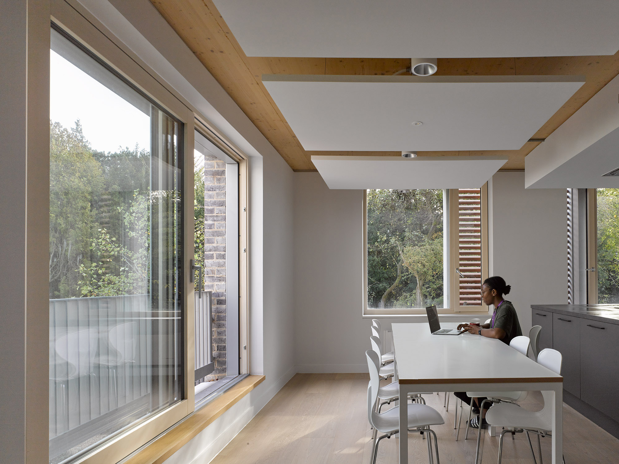 Laid out in the form of a traditional college quad, the Dorothy Wadham Building houses the entire year group in one place for the first time. The design prioritises a strong sense of community by orienting shared and communal spaces so they overlook the internal courtyard, providing a backdrop of activity to the landscaped central garden.