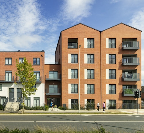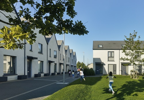 View all projectsThe first new town in Ireland since the 1960s, Adamstown is 16km west of Dublin. In 2018 we produced a high-level masterplan for a 14.2ha site within the settlement, followed by detailed planning applications for masterplans for a residential quarter at St Helen’s (Phase 2), and a Town Centre masterplan. We are currently delivering over 600 new homes across several phases. The heart of the scheme consists of a legible grid of houses at orthogonal arrangements. An introduction of varying typologies unlocks a tighter urban grain, with buildings surrounding the perimeter at four to five stories.