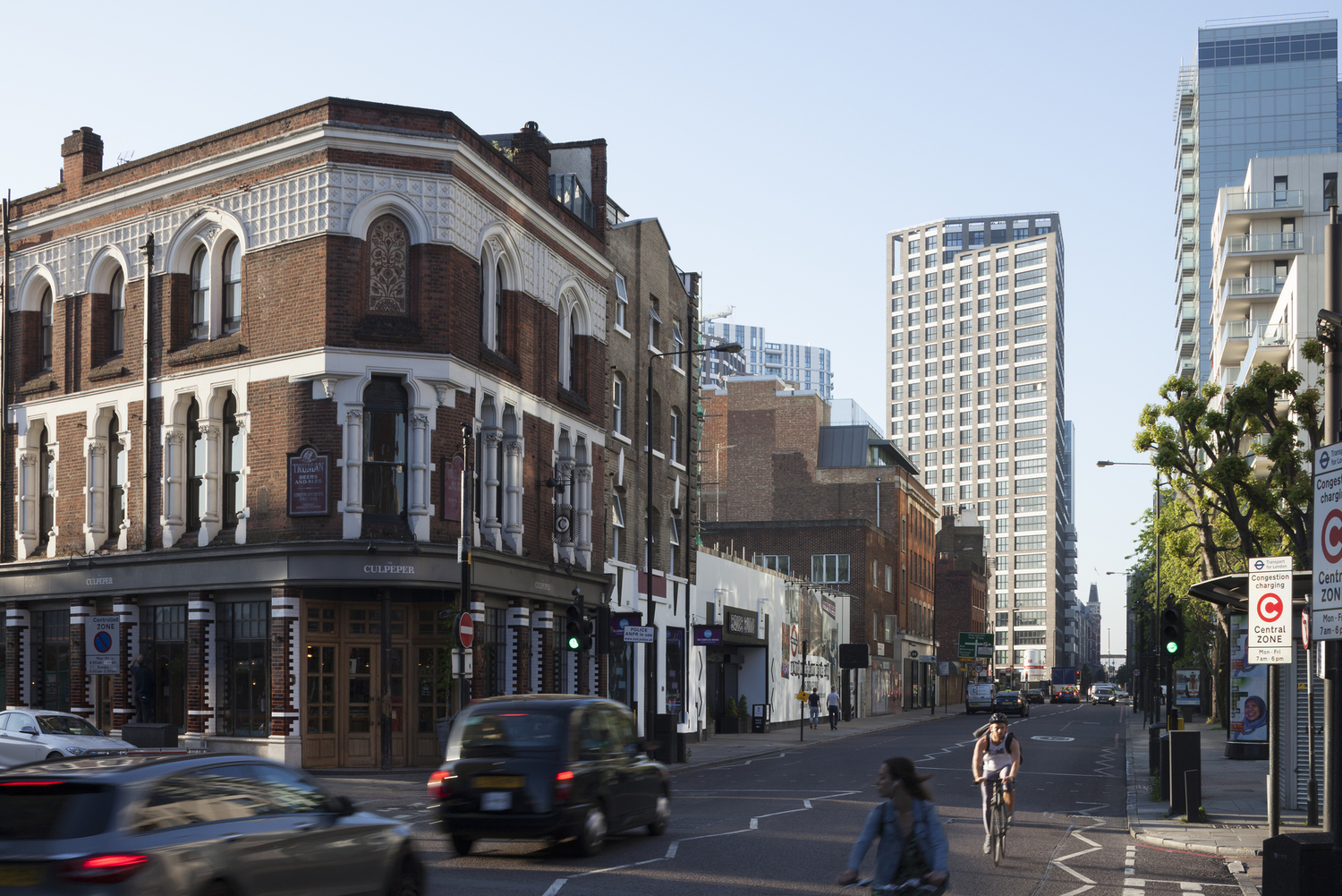 View all projectsThree residential towers, a hotel, office and commercial space, are grouped on a compact site opposite Aldgate East Station just beyond the eastern edge of London’s Square Mile. Over time, a changing street pattern had resulted in this site becoming an unappealing island at a busy junction, with various proposals for developments put forward and then abandoned. Our design addresses this insularity, opening a new pedestrian route that cuts diagonally across the plot, framed by the three towers, each kite-shaped in plan. The buildings’ materiality responds to the largely brick character of the neighbouring Whitechapel Conservation Area.