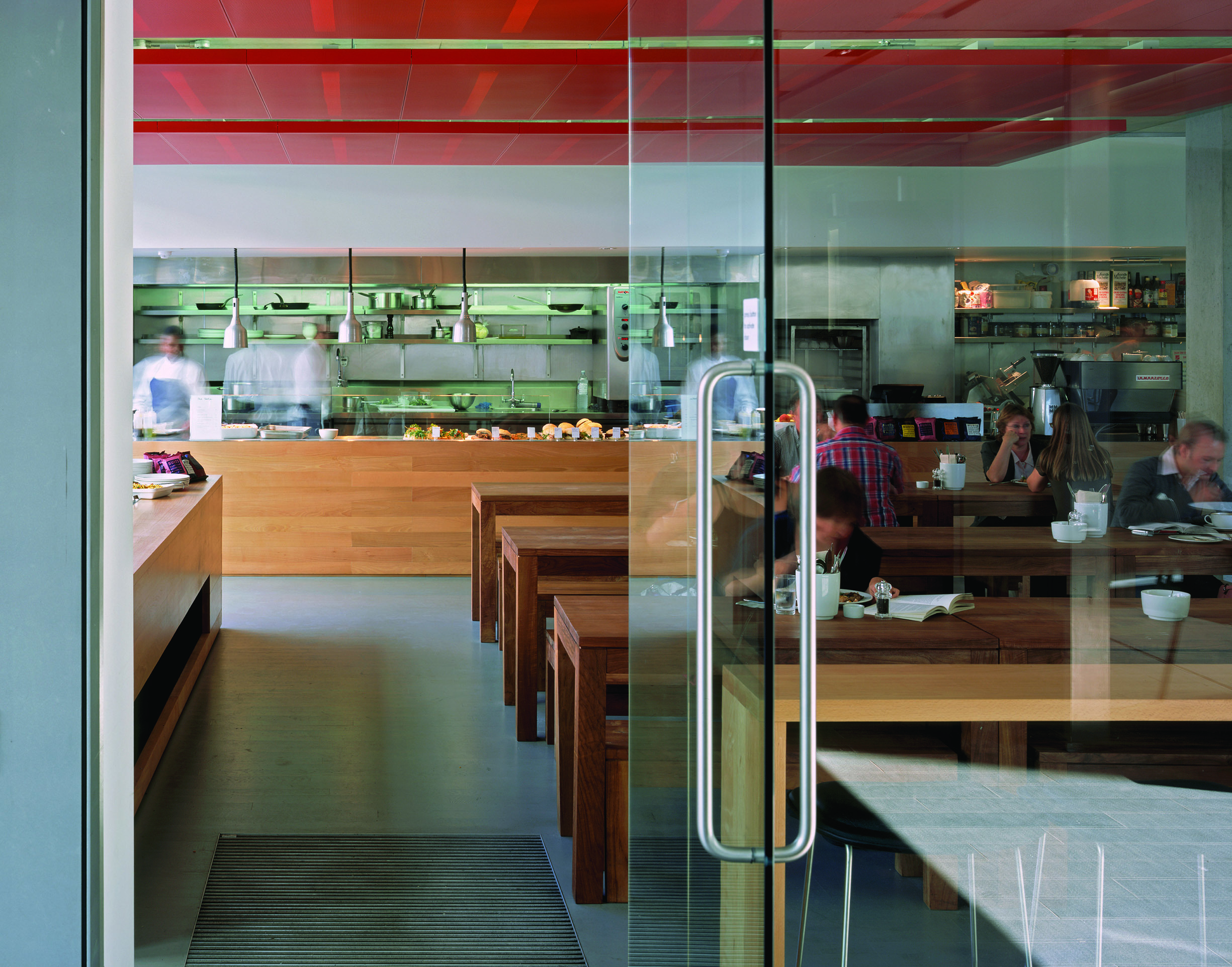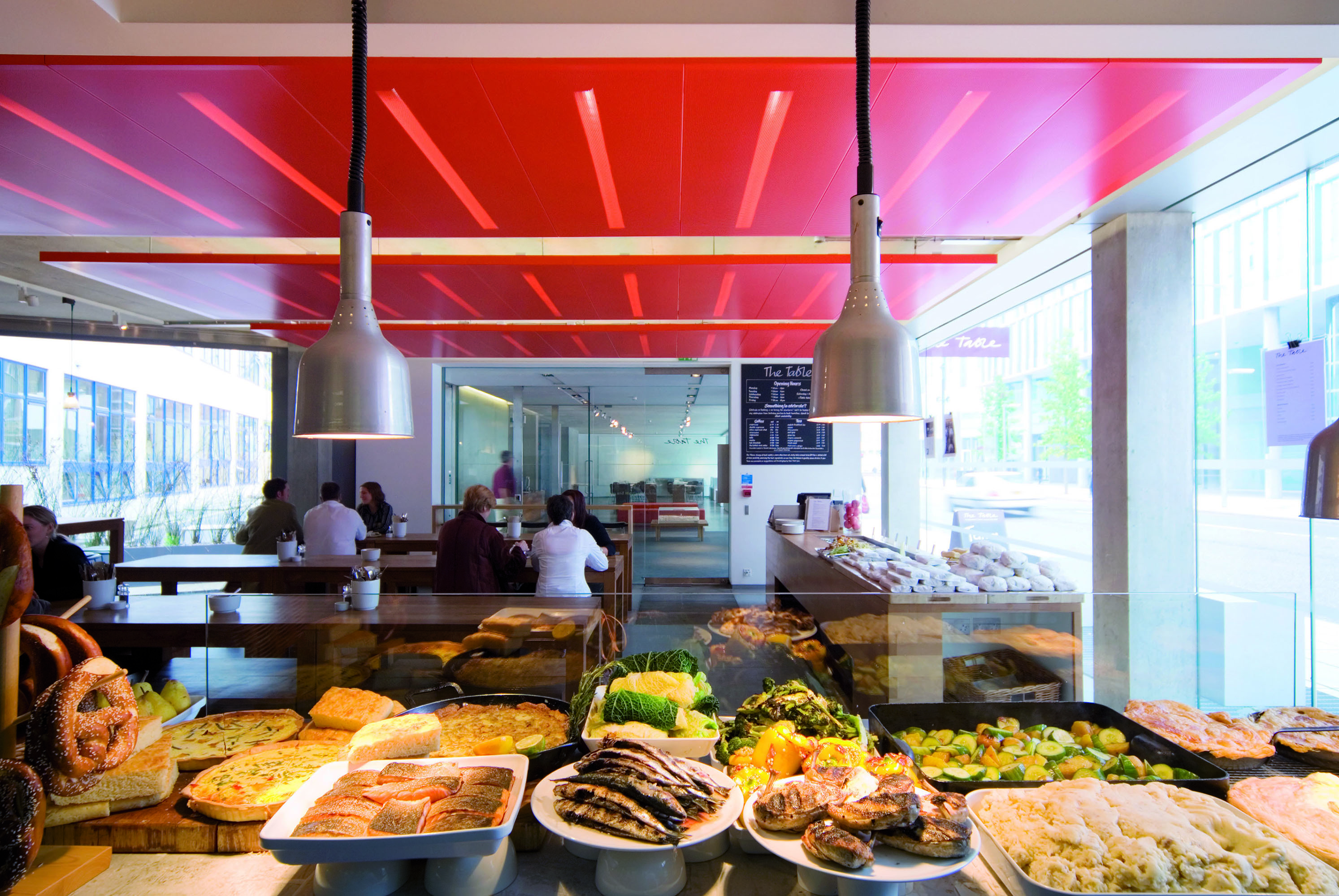 One the ground floor, a large open reception area has multiple functions from meetings to a shared spot for lunch, and exhibitions and events. Opposite it the Table Cafe. The basement contains a series of meeting rooms, training and support spaces.