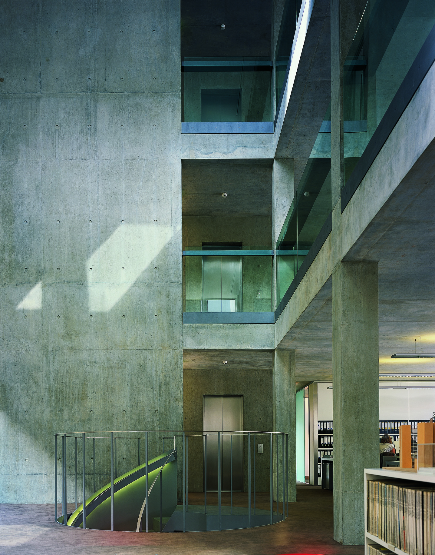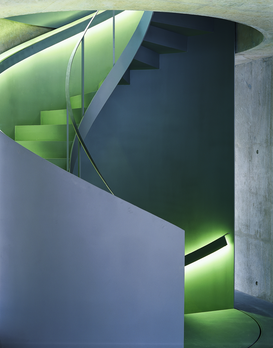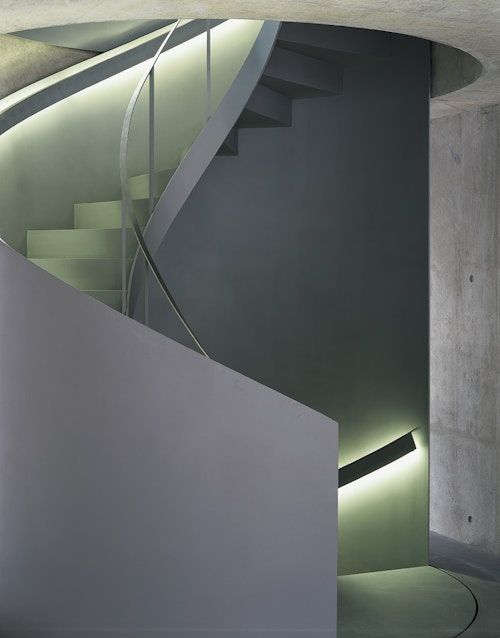 The building is constructed in exposed in-situ concrete, simple and robust, that acts as a heat sink to moderate temperature fluctuations, supplemented with an underfloor heating and cooling system.
