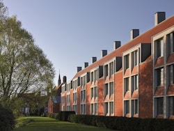 The rhythm of tall bedroom bays establish a single, ordered facade
