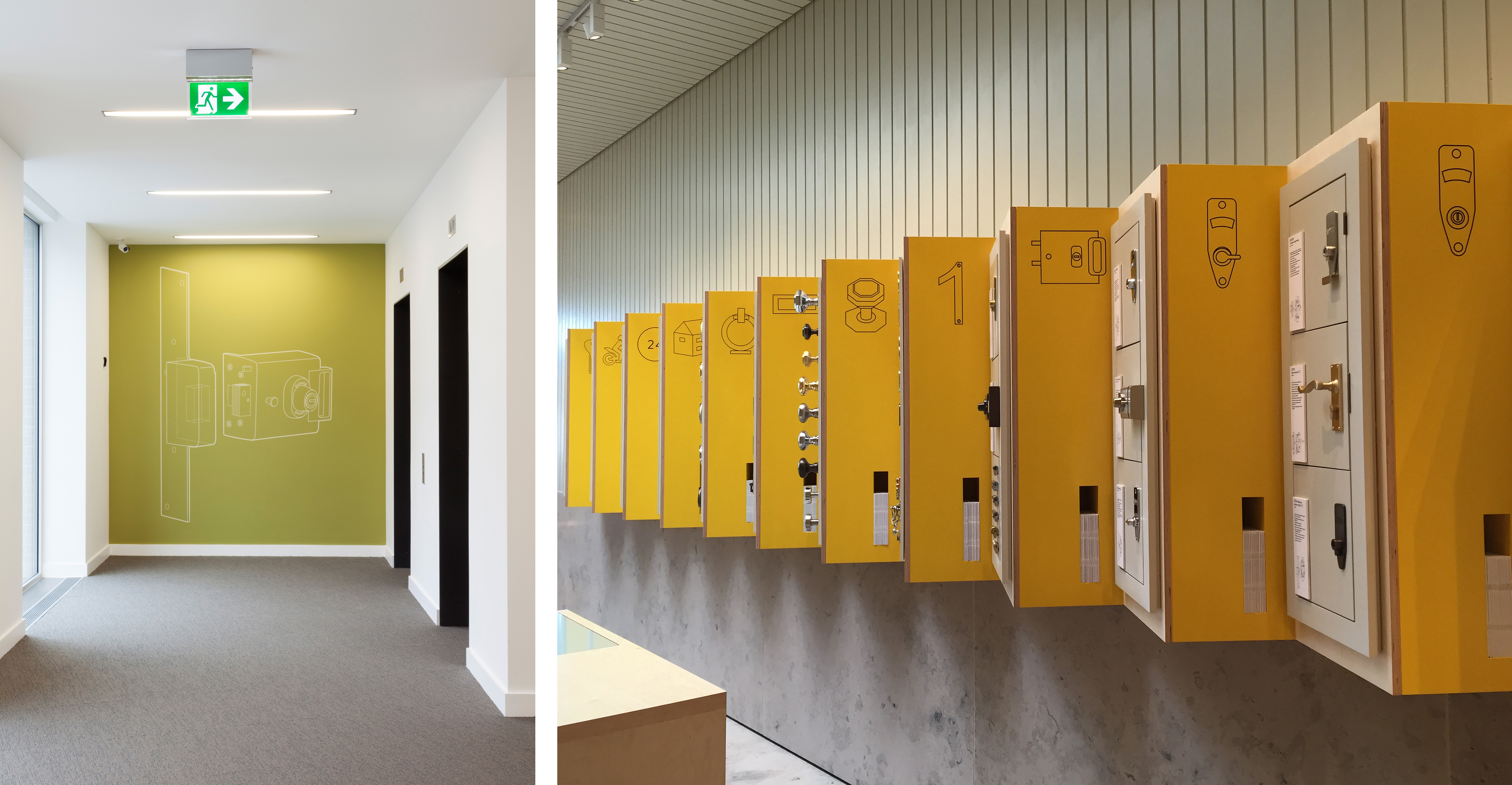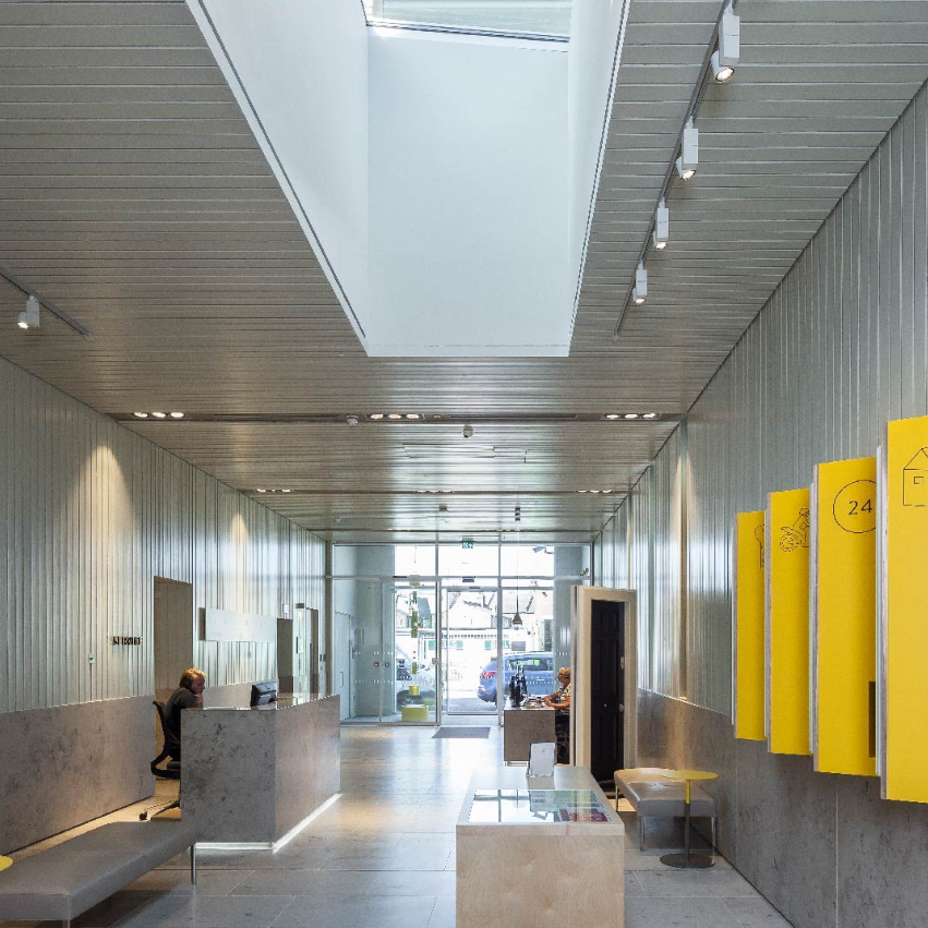 The new building is split into two wings, unequal in length and linked at ground floor and first floor via a generous south facing terrace. The office accommodation is located on the upper floors with the cores placed towards the ends of the wings creating smaller areas beyond them for flexible use as either offices or meeting rooms. Workshop spaces for the manufacture of locks and and alarms and the public showroom are on the ground floor.