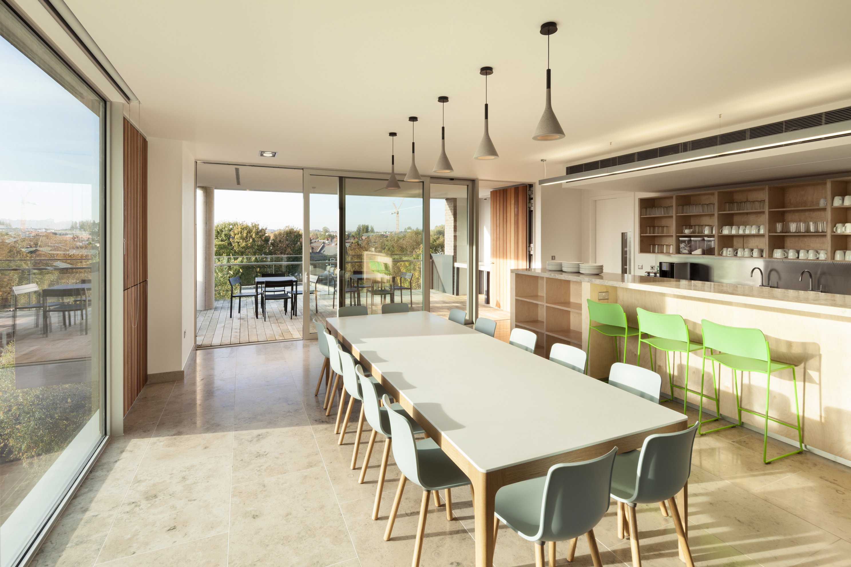 Upstairs, the works canteen resembles a large family kitchen with an accessible balcony providing far reaching views over south London while the showroom on the ground floor where products are displayed is flooded with natural daylight.