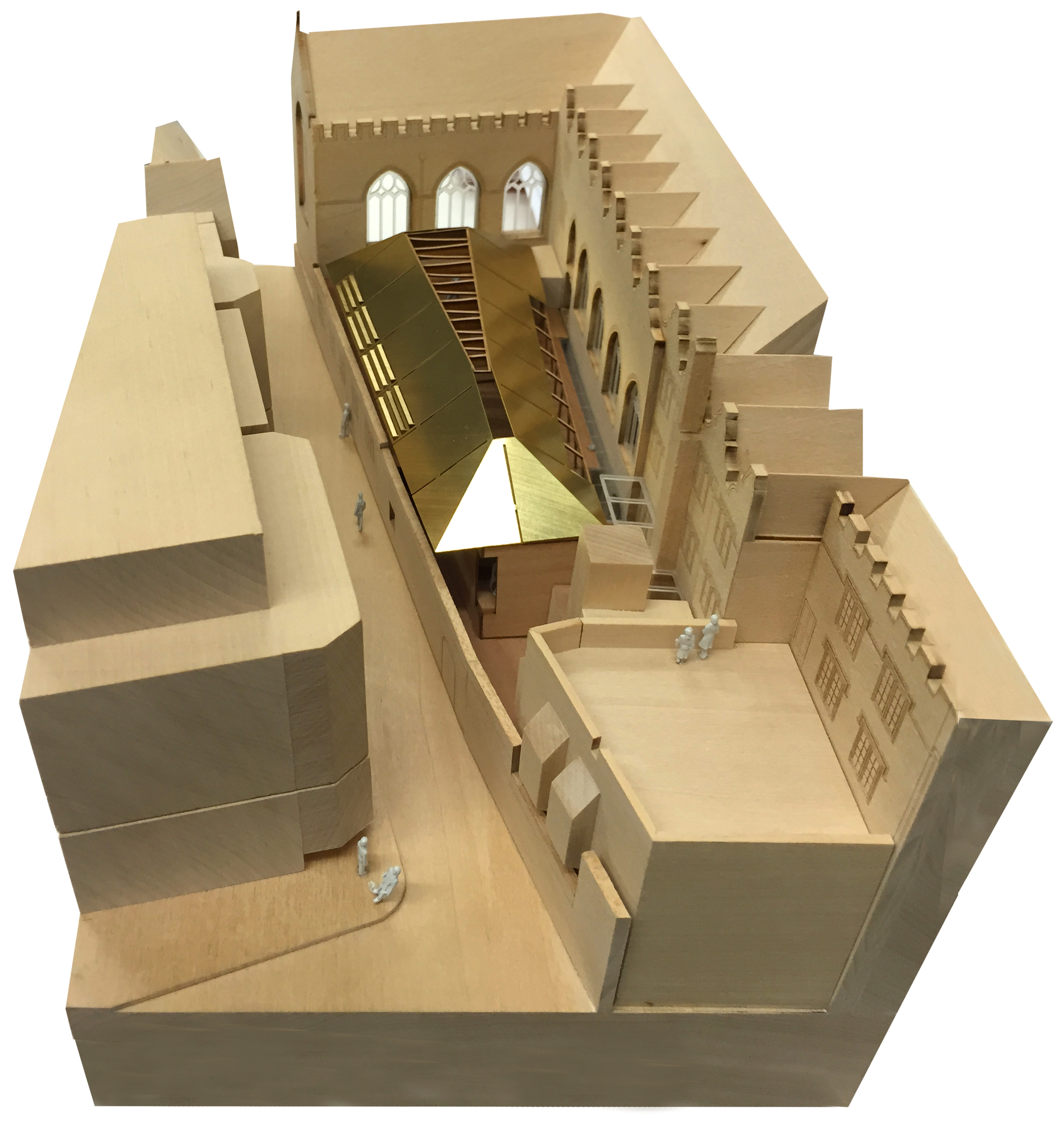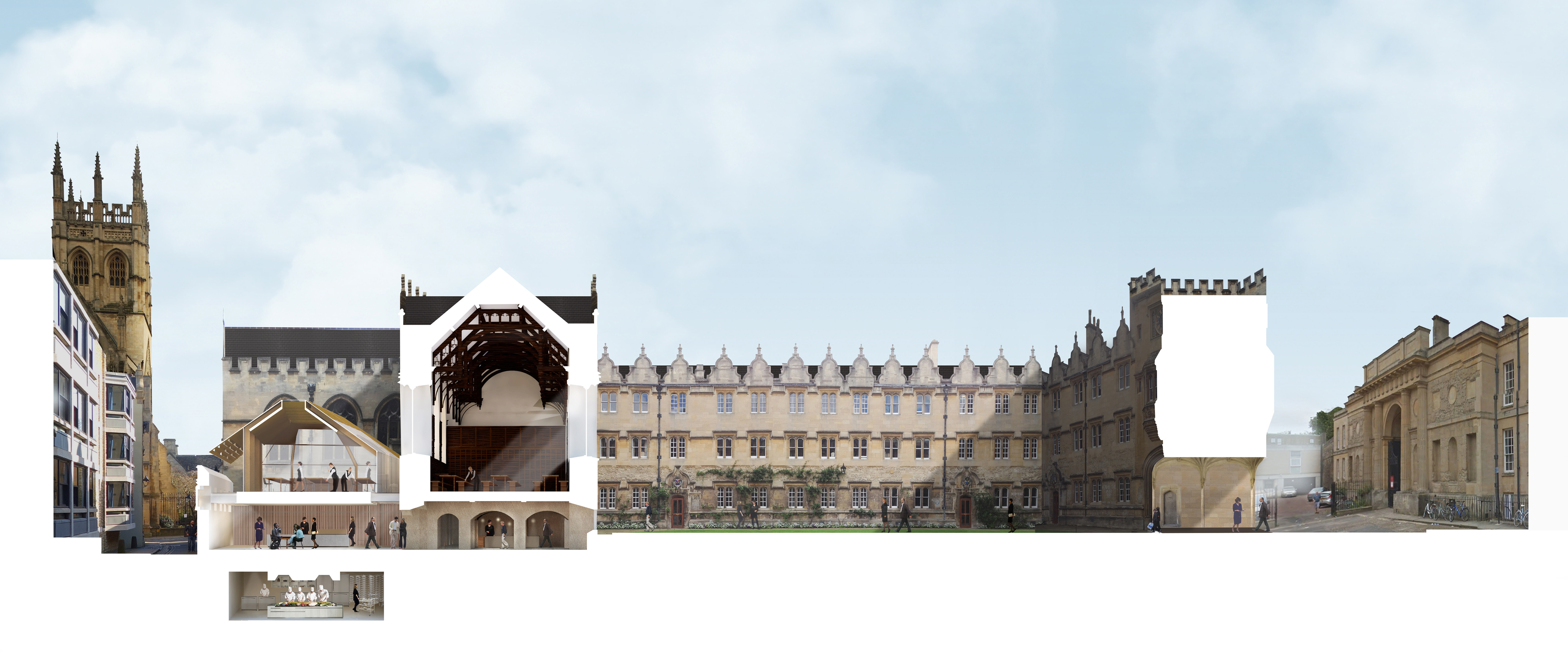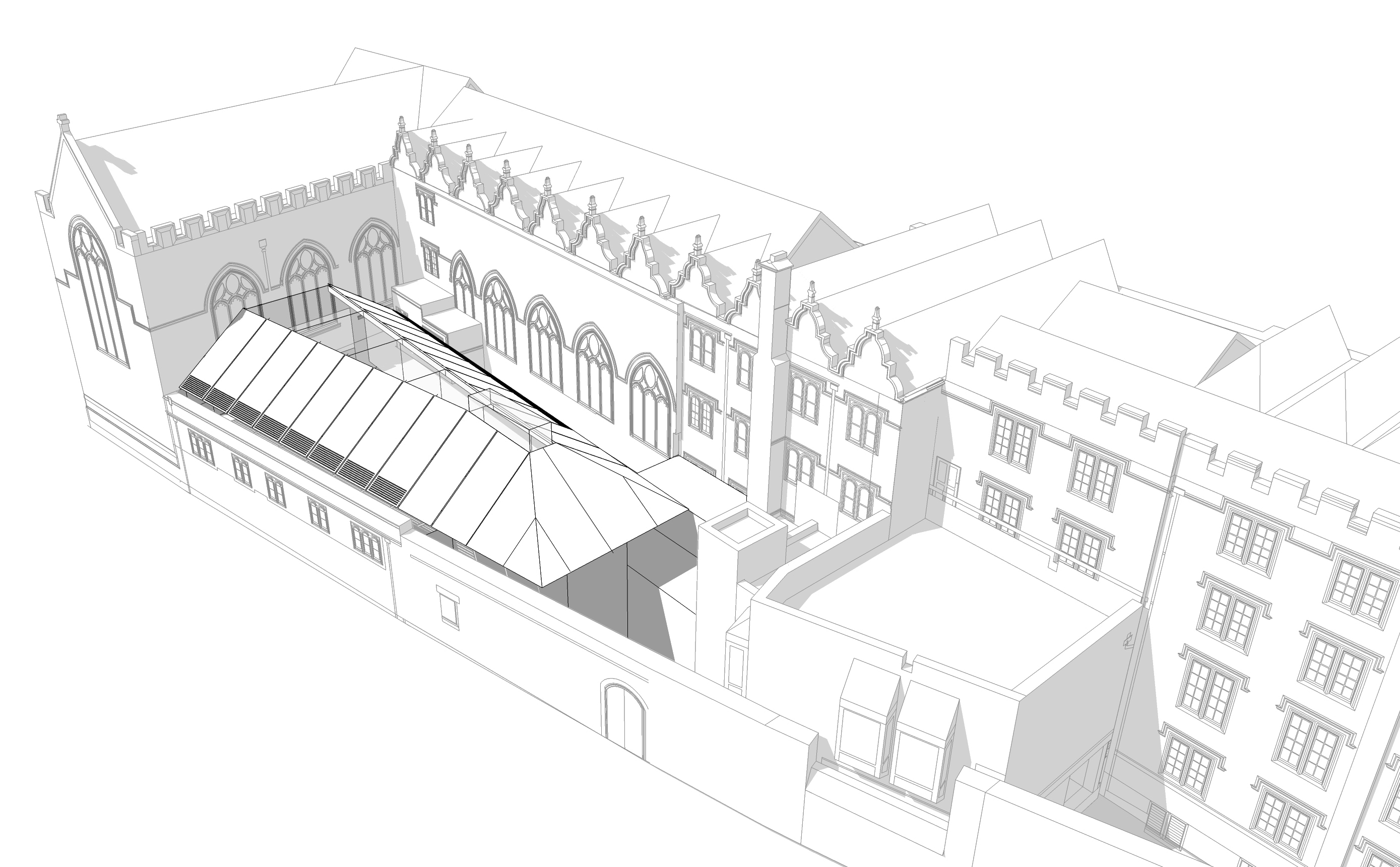 View all projectsSet within the context of Grade I listed 17th-century collegiate buildings, a new pavilion in Oriel's medieval kitchen courtyard replaces a series of utilitarian service buildings. Beneath a patinated bronze pitched roof, which responds both to the tone of the surrounding stonework and the historic character of the college, new spaces are woven with old. The new facilities will streamline food service for the formal hall and create opportunities for informal gathering. A series of enhancements below ground will enrich the ambience of the College bar and its neigbouring shared spaces as it opens out onto a new landscaped courtyard.