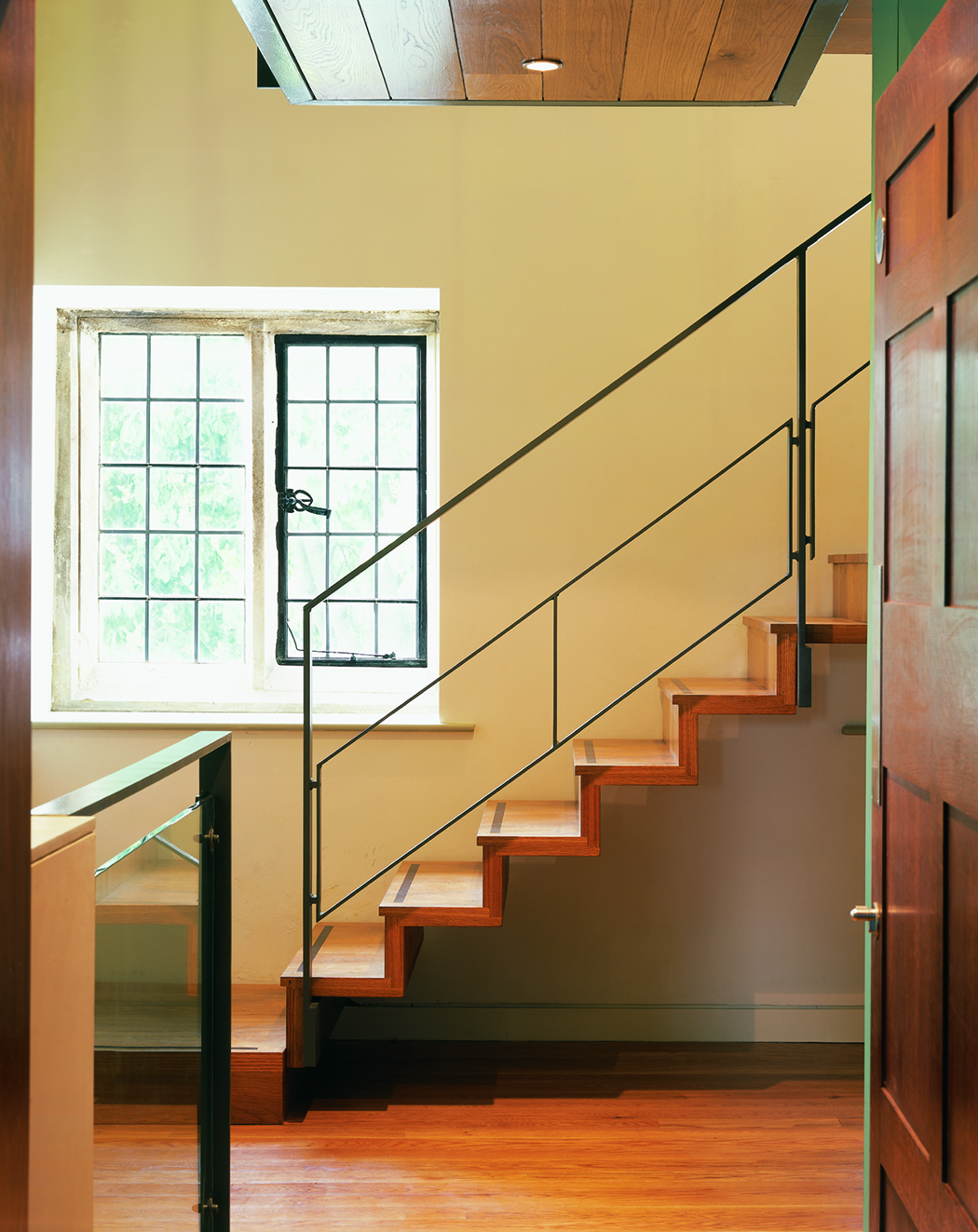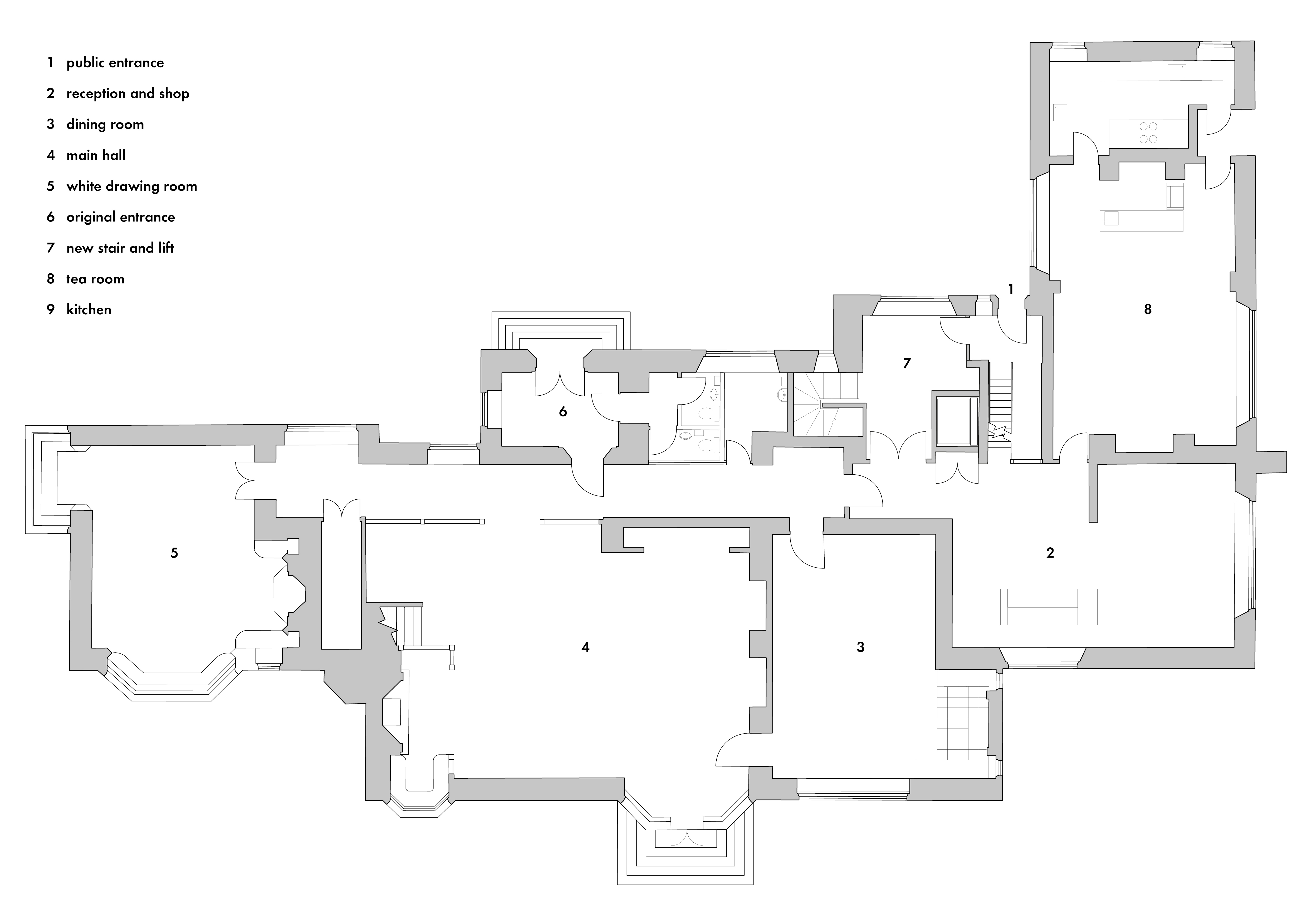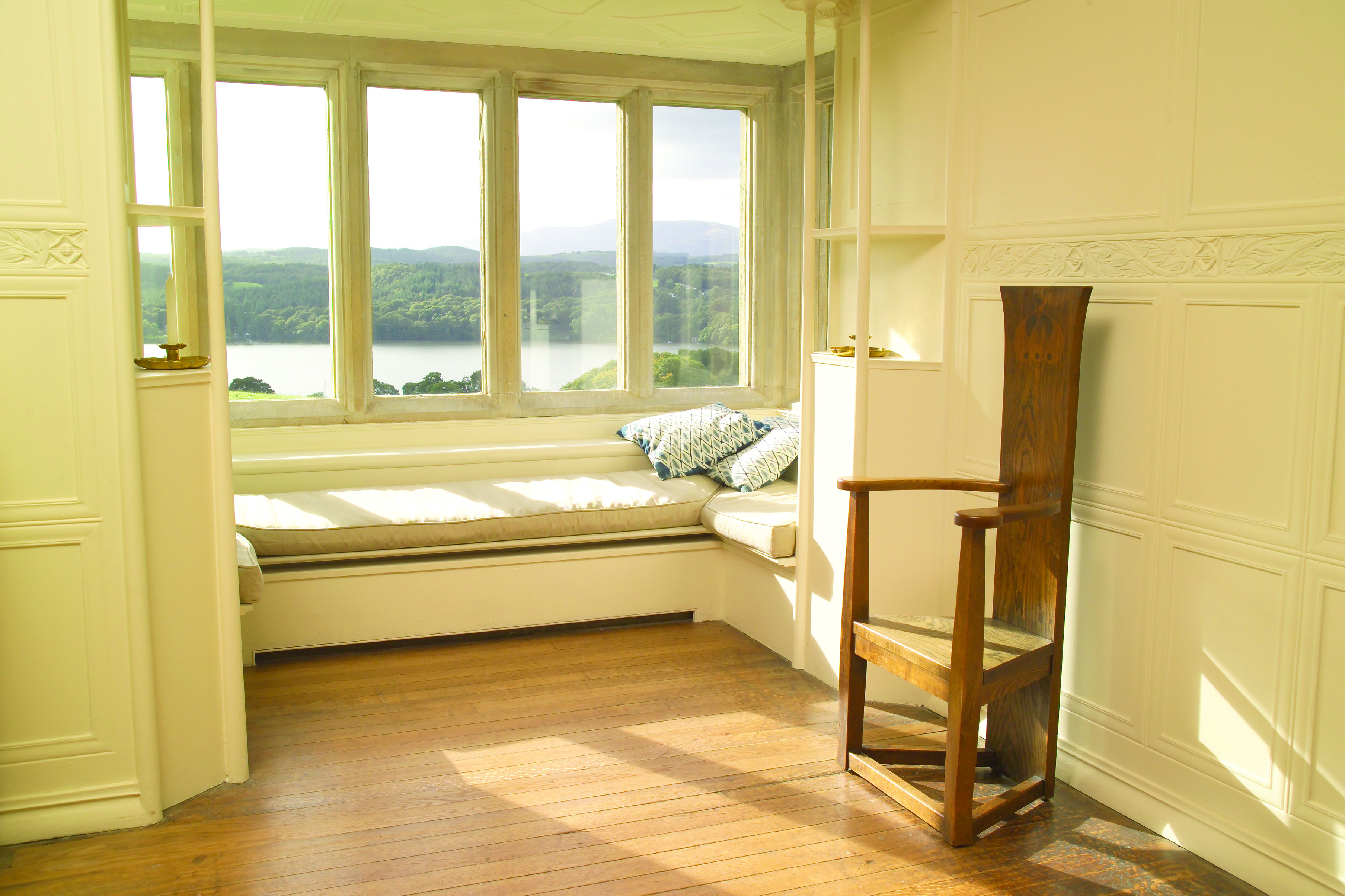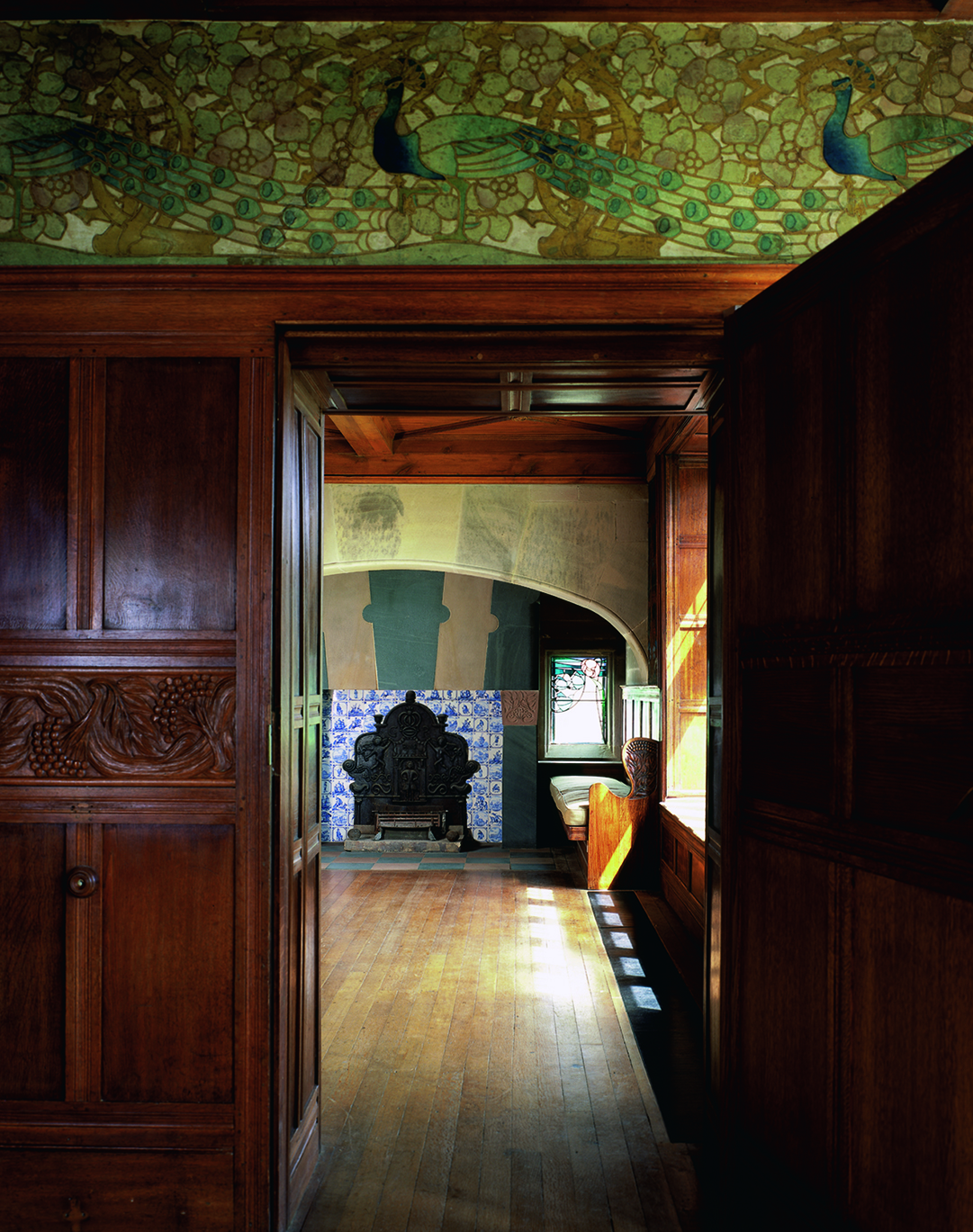 View all projectsBlackwell is a seminal Arts and Crafts house located in the Lake District. Designed by M H Baillie Scott and built around 1900, it is a key example of his early decorative work. A restoration also adapted the house for use as a public gallery for the applied arts. Rich original colours were exposed and metalwork, stained glass, timber panelling and printed wall coverings were restored. Modest service rooms were converted to provide visitor facilities, with new elements treated as modern insertions. Externally, there is a new entrance courtyard and sunken parking area, and the planting uses wildflowers and trees featured in the internal decoration.