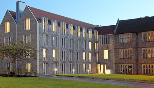 View all projectsThis 71-bed boarding house is designed to be clearly contemporary in construction detail whilst contextual in material, massing and form, recalling the steeply pitched gable forms of the listed 19th Century buildings on the school campus. Our second project for Brighton College, the building provides student and staff accommodation and facilities for pastoral care with forty student bedrooms with shared bathrooms, Master and staff flats, offices, shower rooms, laundry and storage space.