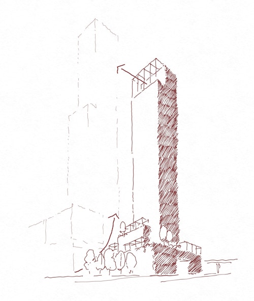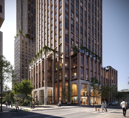 View all projectsFollowing an invited competition, we were selected as the architects for Building 2, Quayside, within a new low-carbon neighbourhood close to downtown Toronto and steps from Lake Ontario’s waterfront. Part of an ensemble of six buildings connected by an urban forest, the 53-storey tower responds to the surrounding urban, suburban and natural contexts through a stepped back form and active frontages. Providing 576 high-quality rental homes, Building 2 will offer benefits to residents and the community with a daycare, health and wellness facilities, community kitchen, flexible education rooms and co-working areas plus an outdoor terrace. At street level, a cafe and retail space animate the public realm and provide a welcoming approach from Small Street.