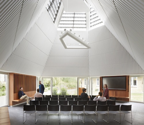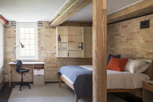 View all projectsDarwin College enjoys an enviable location on the banks of the River Cam. Within this setting, a Victorian conversion of an eighteenth-century grain warehouse is set in lush gardens and contains a sequence of graduate student rooms. The John Bradfield Court project is a refurbishment - the first since the college was founded - that significantly upgrades these facilities whilst retaining the building's special character. Neighbouring it is a new free-standing pavilion, which will provide a focal point for College life as a flexible social and meeting space. Its tall, slate pitched roof echoes the old oast house roof of neighbouring Malting House.
