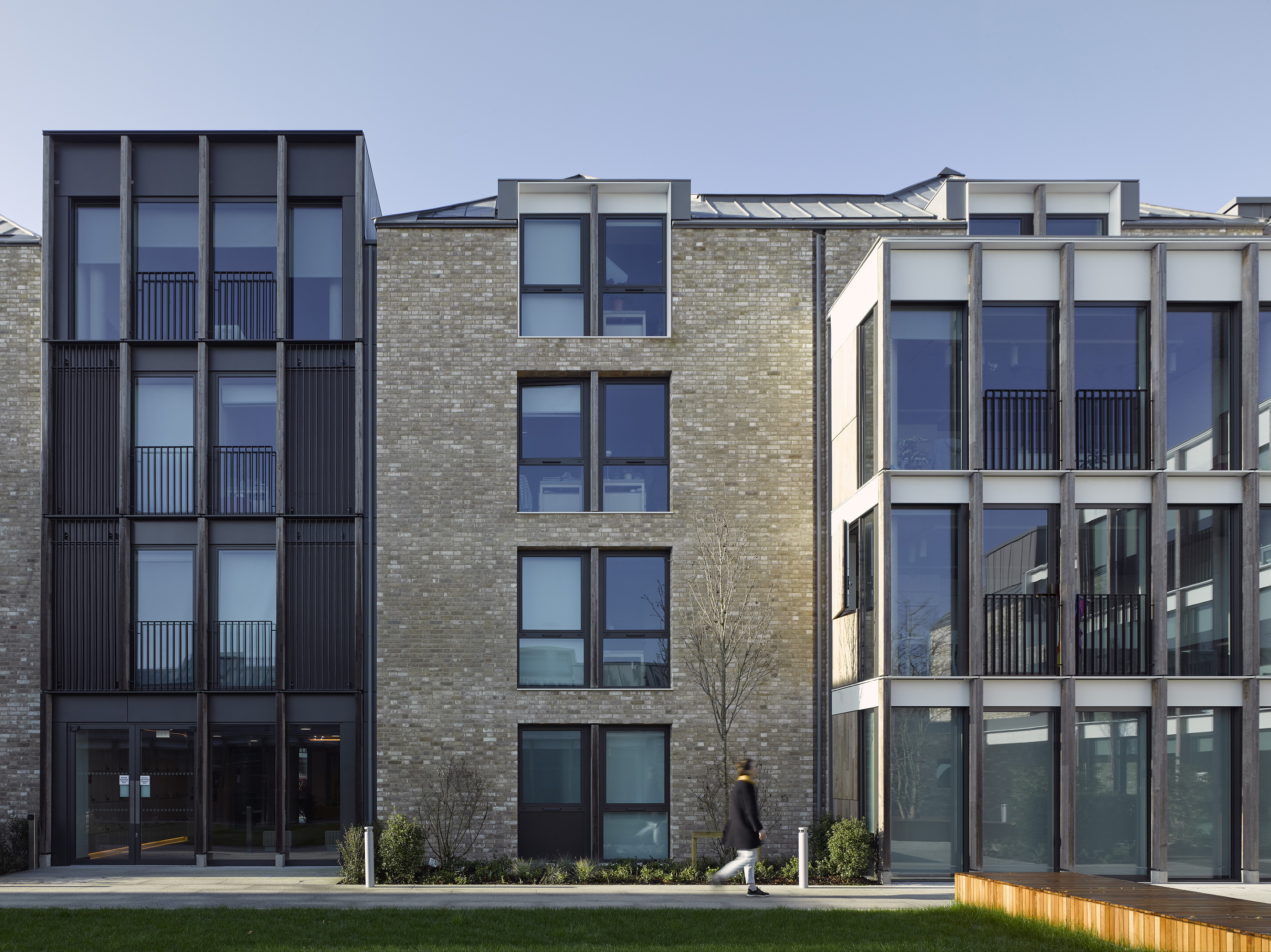 View all projectsThe Dorothy Wadham Building is a new undergraduate residential quad comprising four individual buildings of three and four storeys arranged around a shared courtyard garden. Lining the quad's fourth side is a single storey pavilion, an informal common room for students in term time and a conference and teaching facility throughout the summer. Domestic in scale as befits their residential location, the buildings quietly assert themselves, representing the College in this prominent location on a main route into the city.
