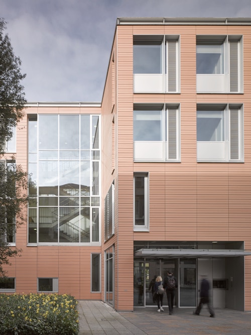 View all projectsThe Faculty of English, University of Cambridge, has been the home to some of the most eminent critics, scholars, teachers and writers of English Literature. The new English Faculty is part of our wider masterplan for the university's Sidgwick arts and humanities campus. The building forms three sides of a west-facing courtyard containing a garden and terrace. A library, cafe and circulation to the main lecture rooms all face onto the garden at ground floor level, with three floors of academic and administrative offices on the upper levels. The building sets back at its entrance to accommodate an existing, protected, holm oak tree.