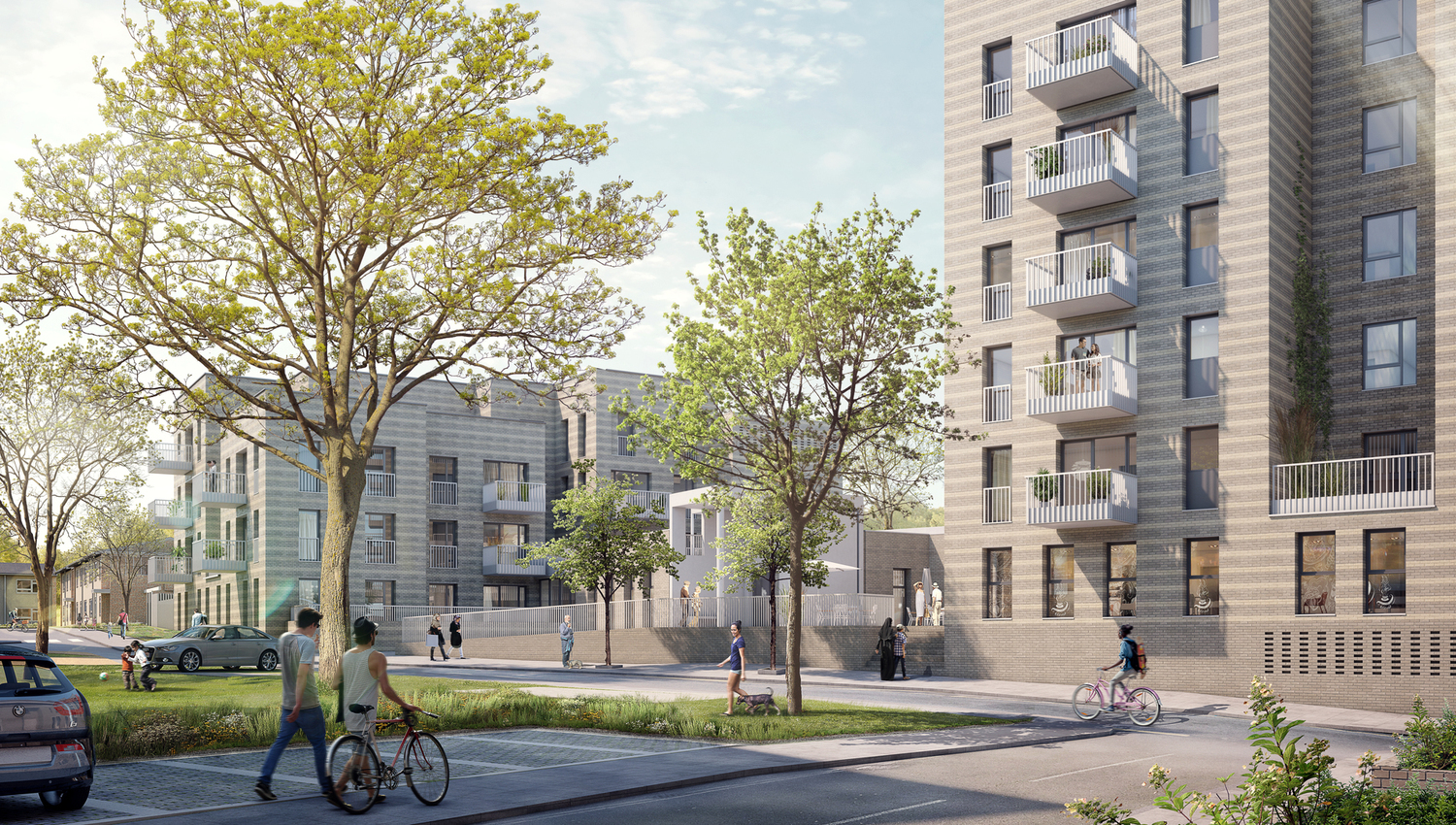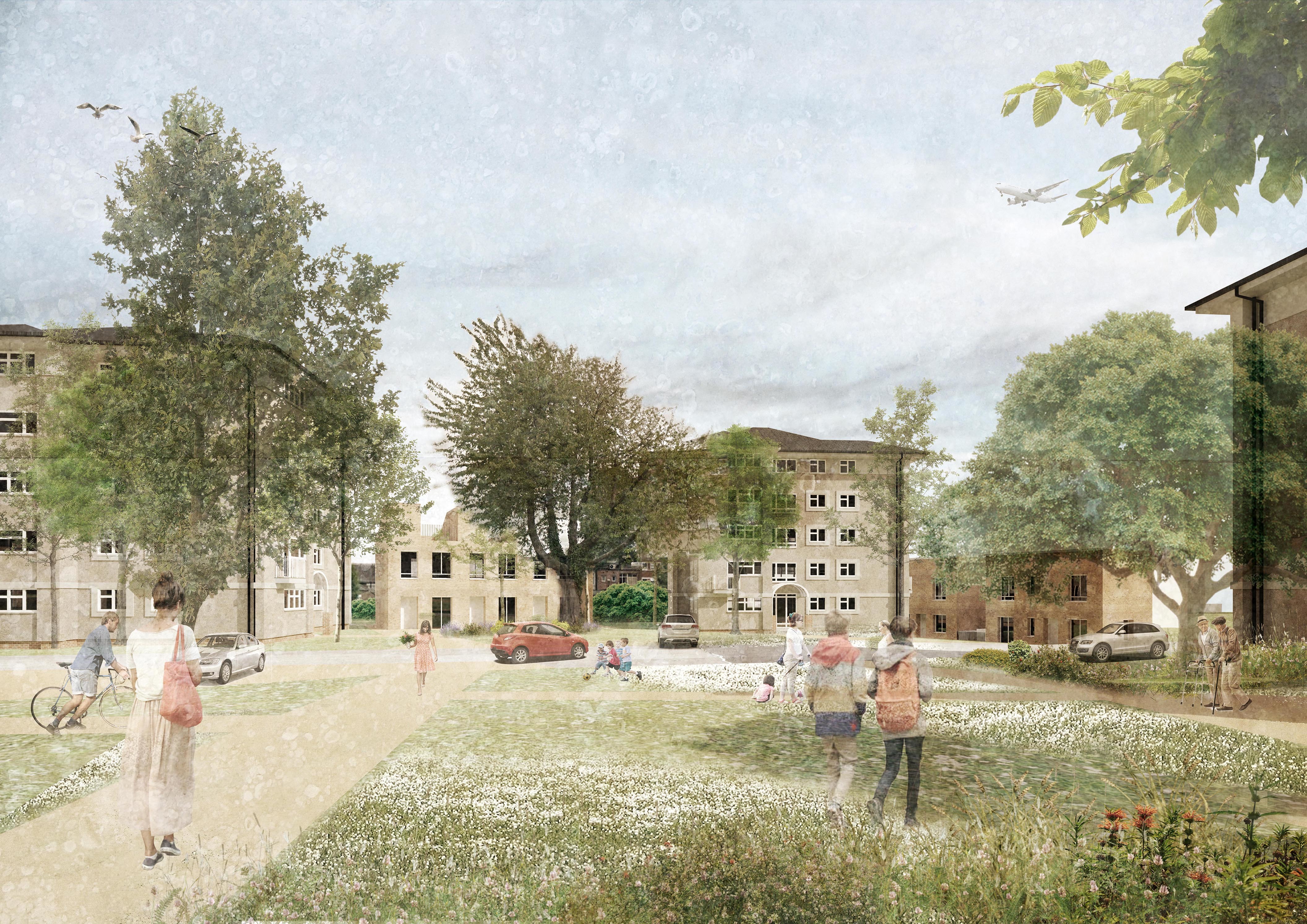 View all projectsLike many housing estates built in the 1960s, Fosters Estate was laid out as a series of blocks surrounded by large areas of under-used open space. A community co-design process is now being used to add more housing and improve the overall condition of the estate. 75 extra care units and 142 mixed tenure homes will take their place on the site, arranged to ensure that the open, park-like character of the estate is retained in line with residents' wishes. New amenity and place spaces will be introduced, along with a better designed and more informal public realm.