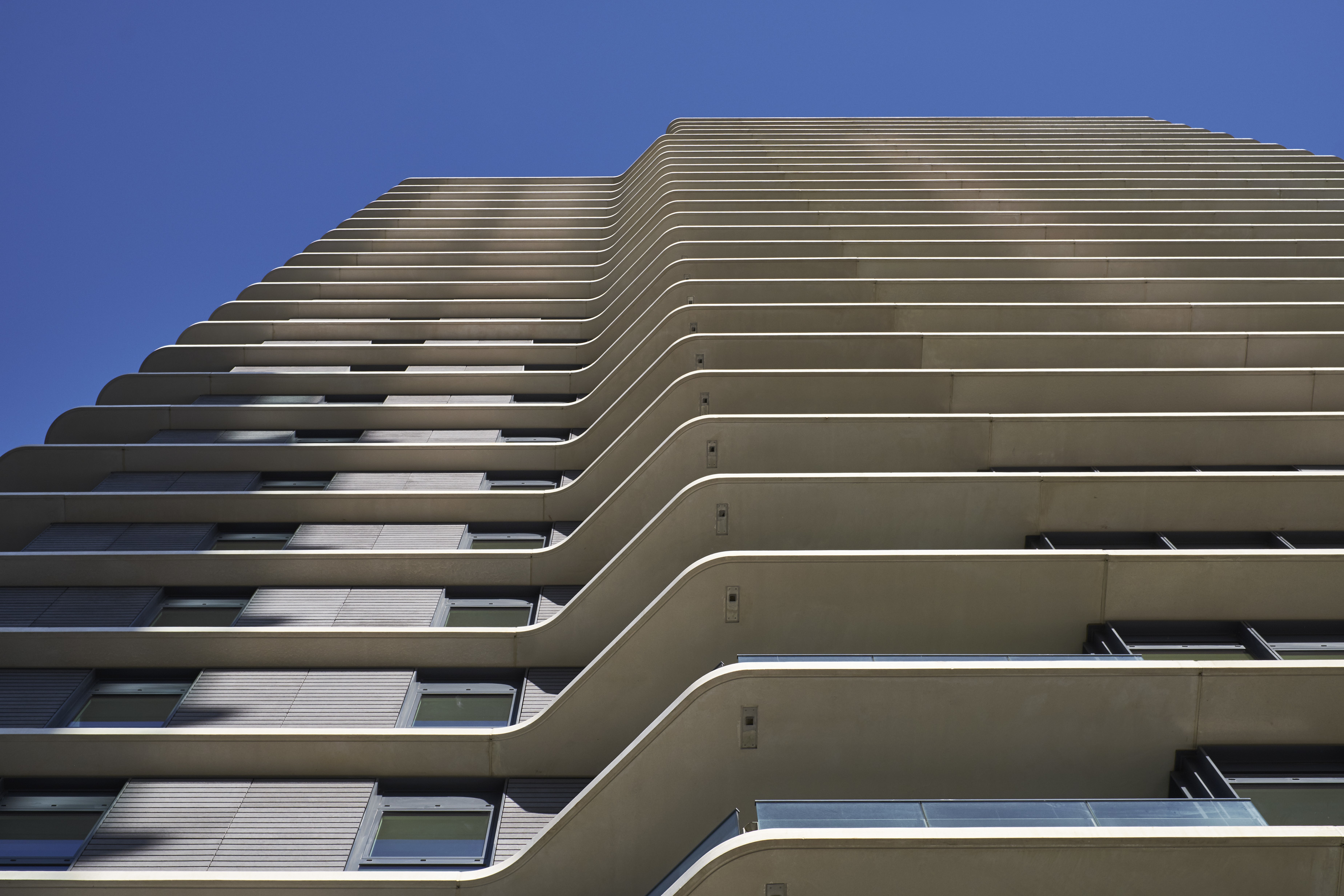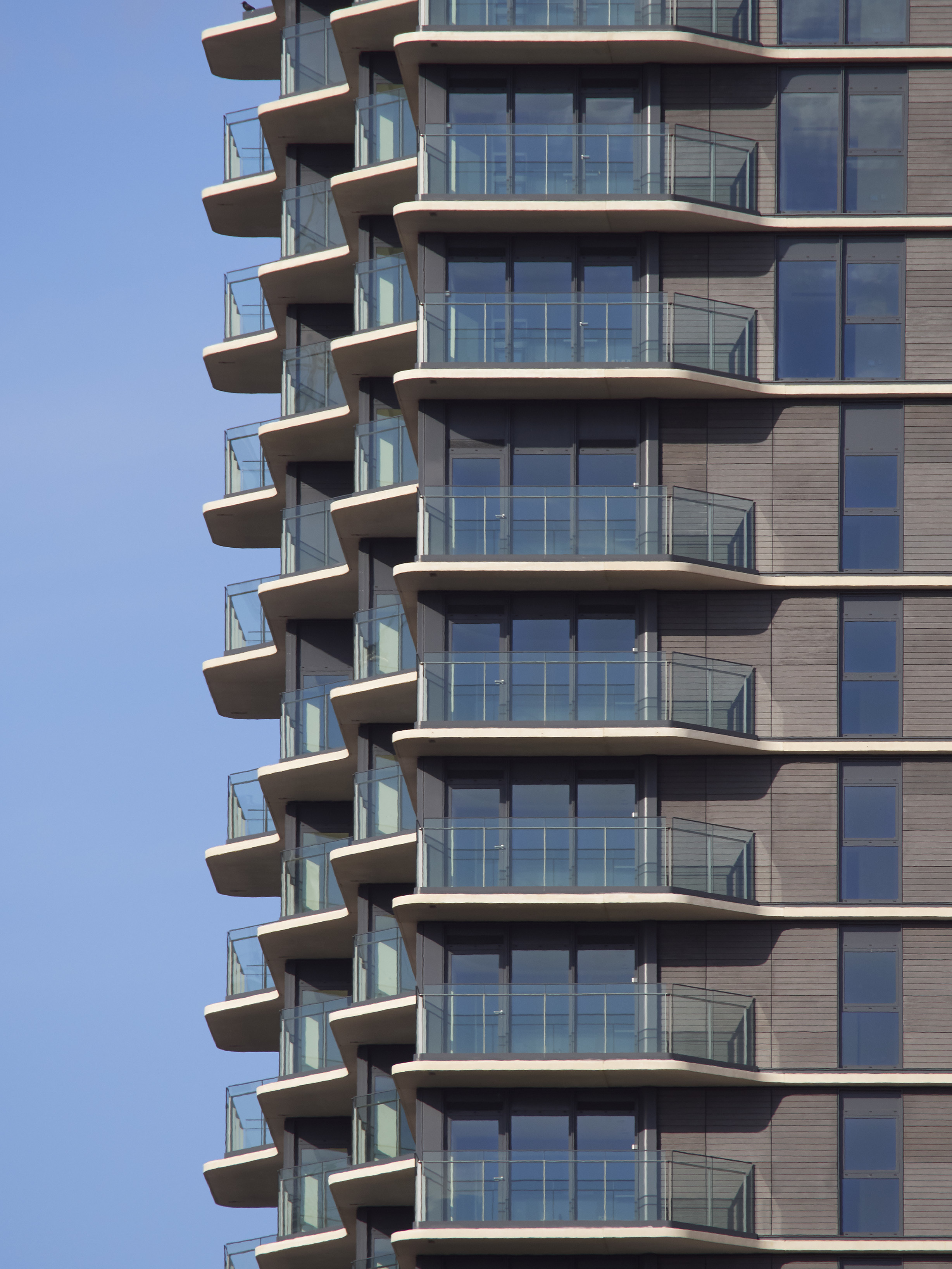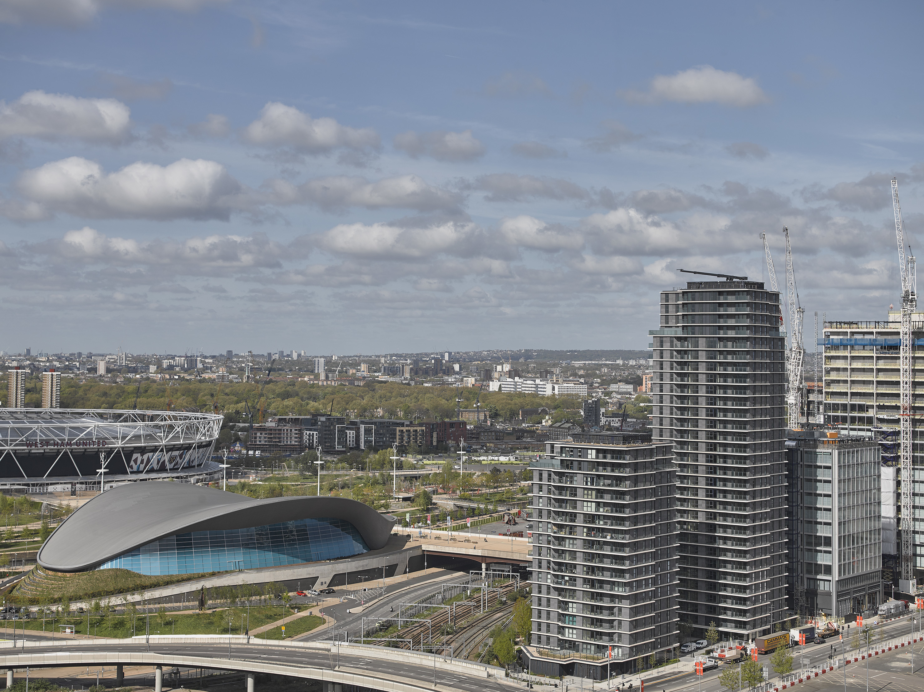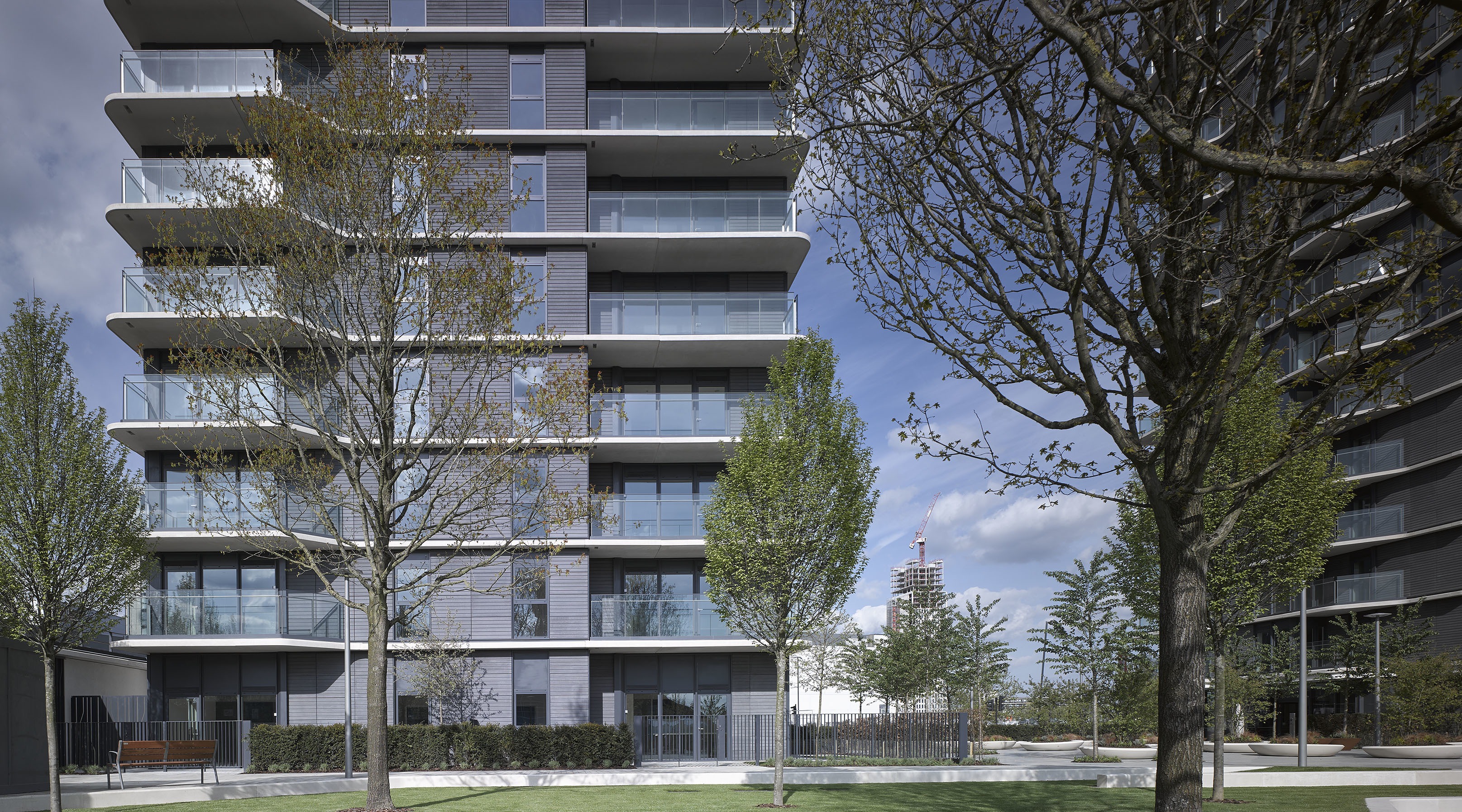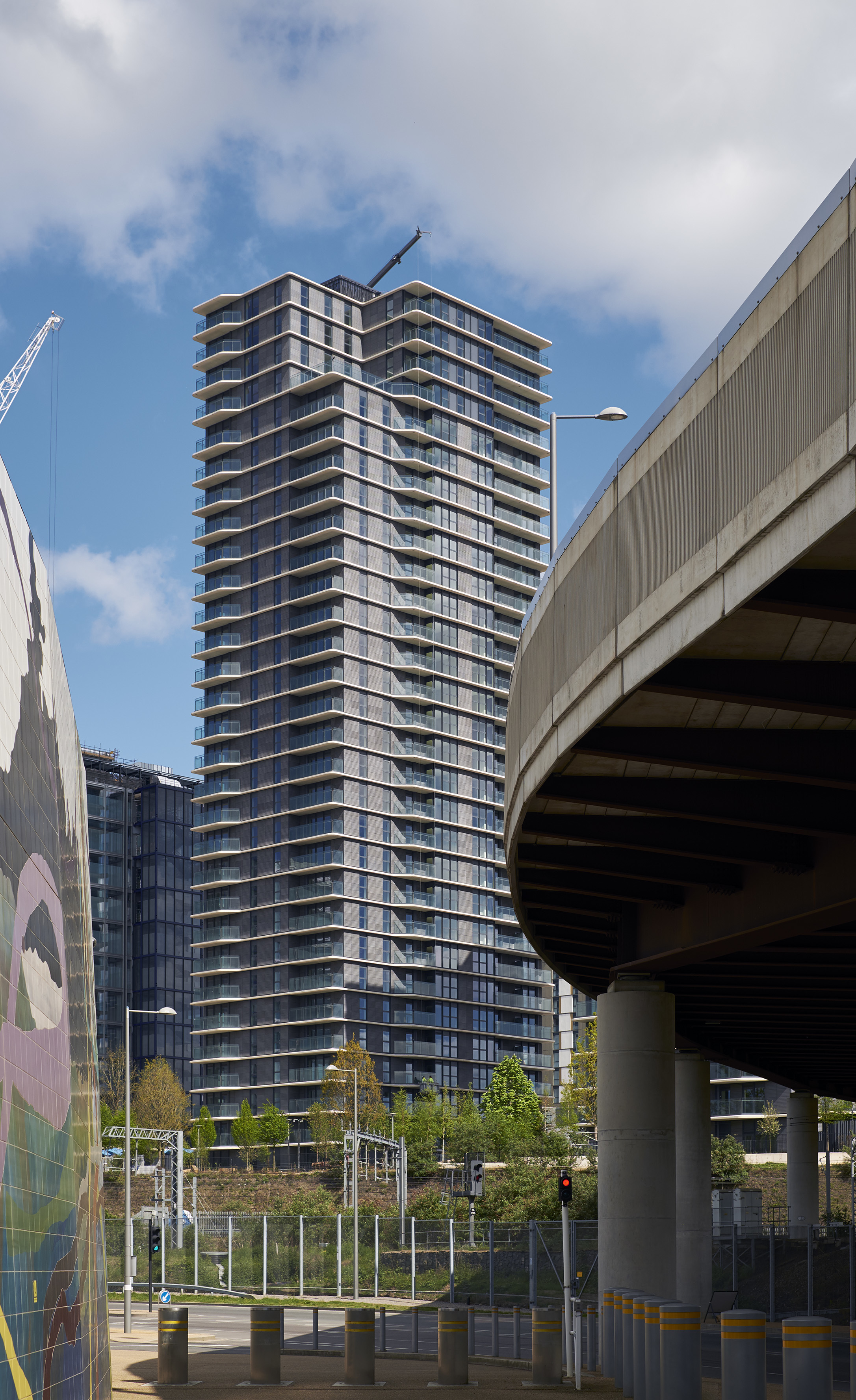 View all projectsTwo residential towers overlook the Olympic legacy landmarks of the Aquatics Centre, the ArcelorMittal Orbit and the London Stadium. The buildings help to form a southern gateway for the Olympic Park, and their design articulates an early legacy concept of 'buildings within a park' relating to and very much being embraced by the new park landscape. Their streamlined design provides a distinctive image, and residents benefit from generous balconies and naturally-lit accommodation across a mixture of home types.