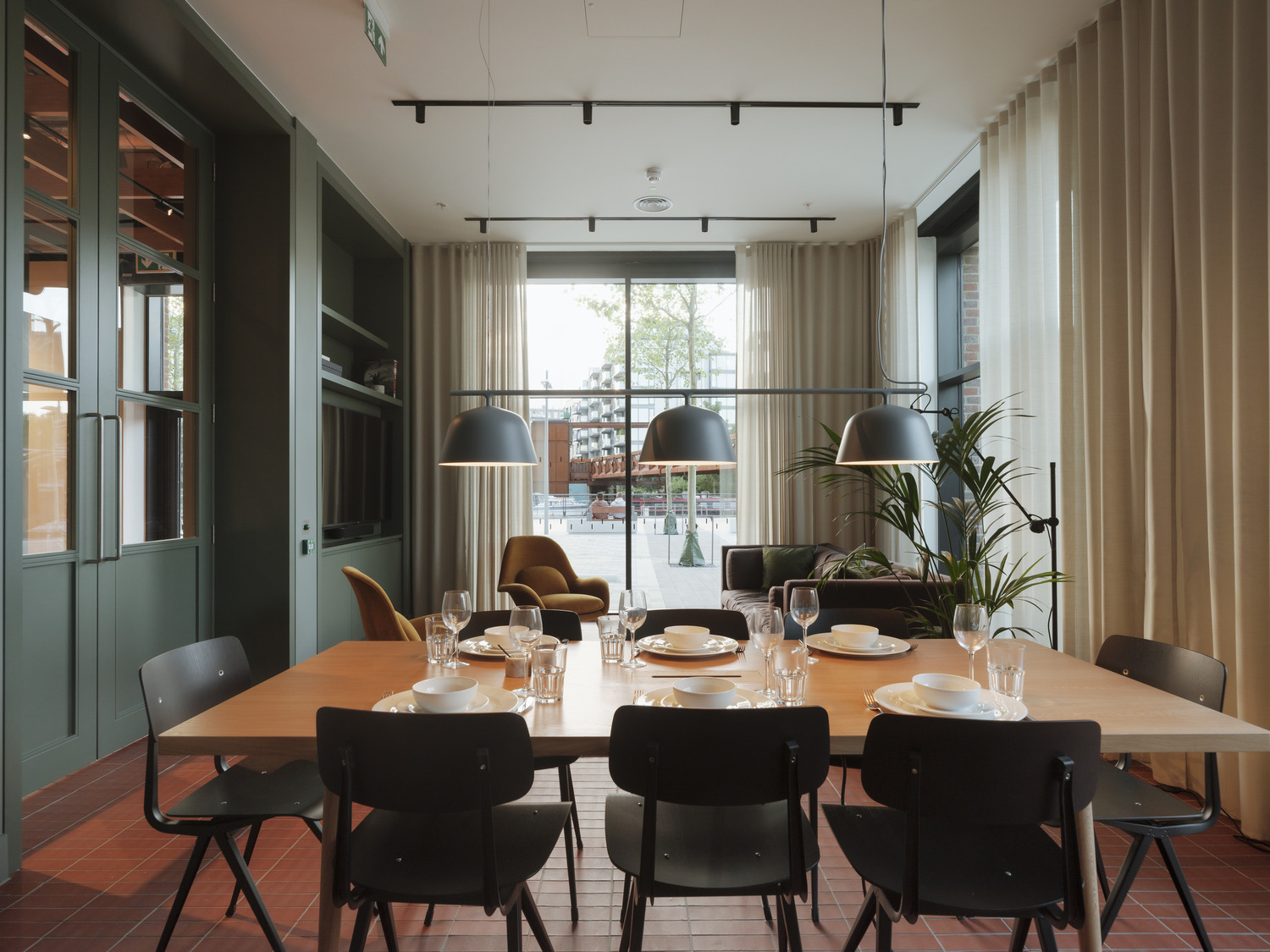 The project’s commitment to increasing and improving ecological habitats includes locating reed beds on the water and protecting the fragile riverbanks by placing all buildings at least 3.8 m from the water’s edge, creating a buffer to sensitive wildlife areas. An acoustic wall was built during construction to screen important nesting habitats.