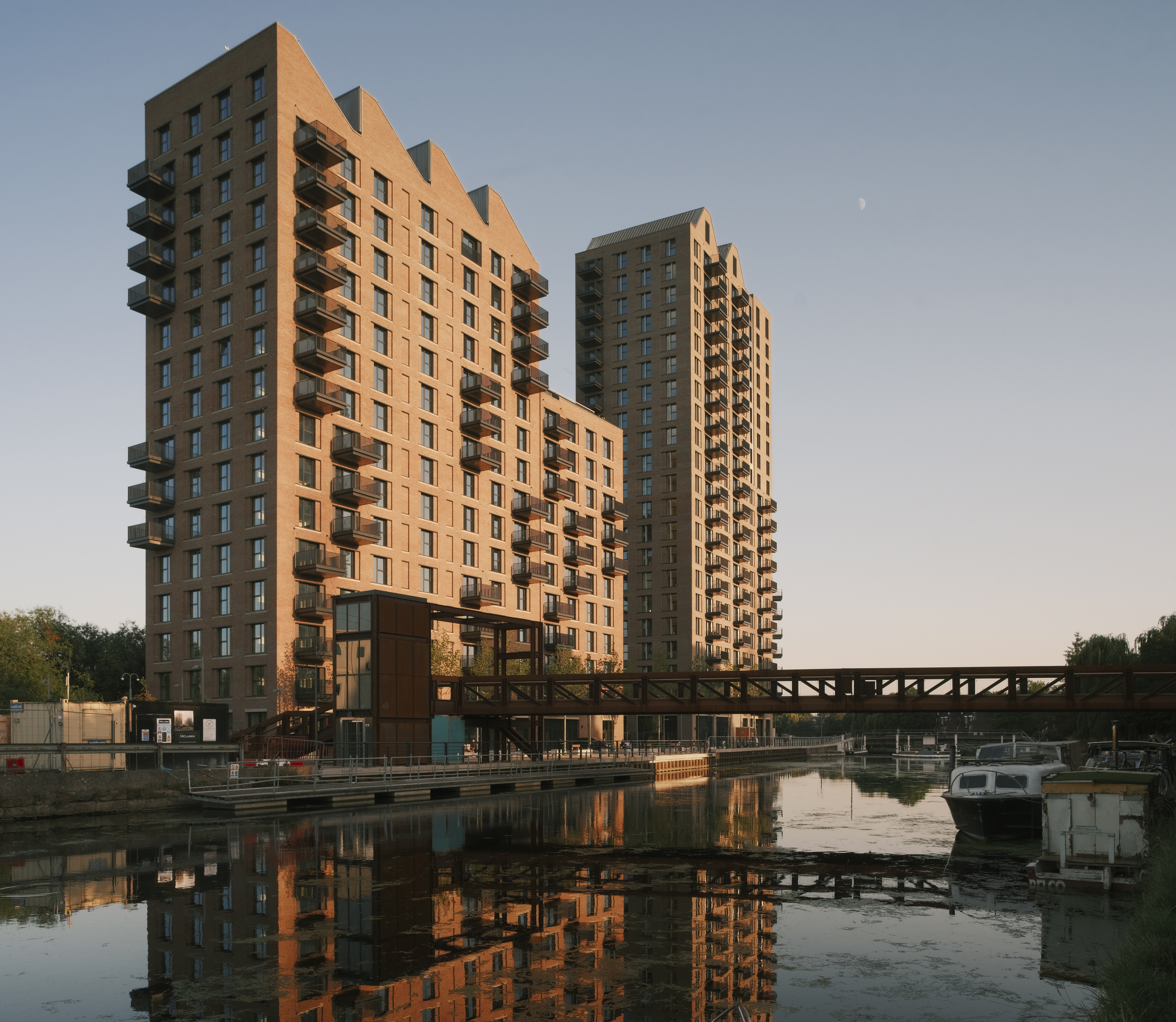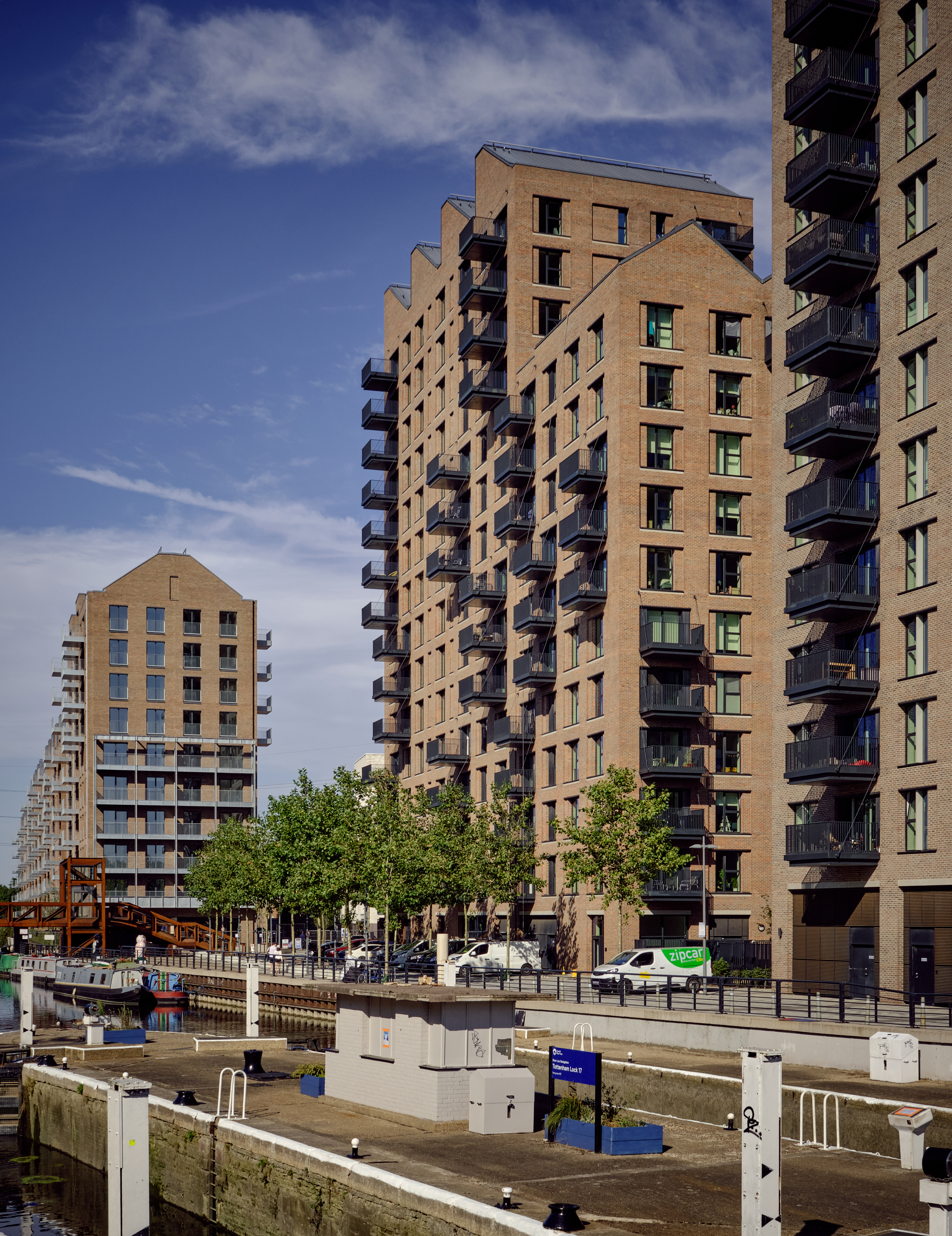 The development embraces its location. The existing site had some light industrial units, but historically the huge (and long gone) Harris Lebus furniture factory had a formidable presence in this area. Timber for its use was transported along the canal and stored in warehouses on the banks.