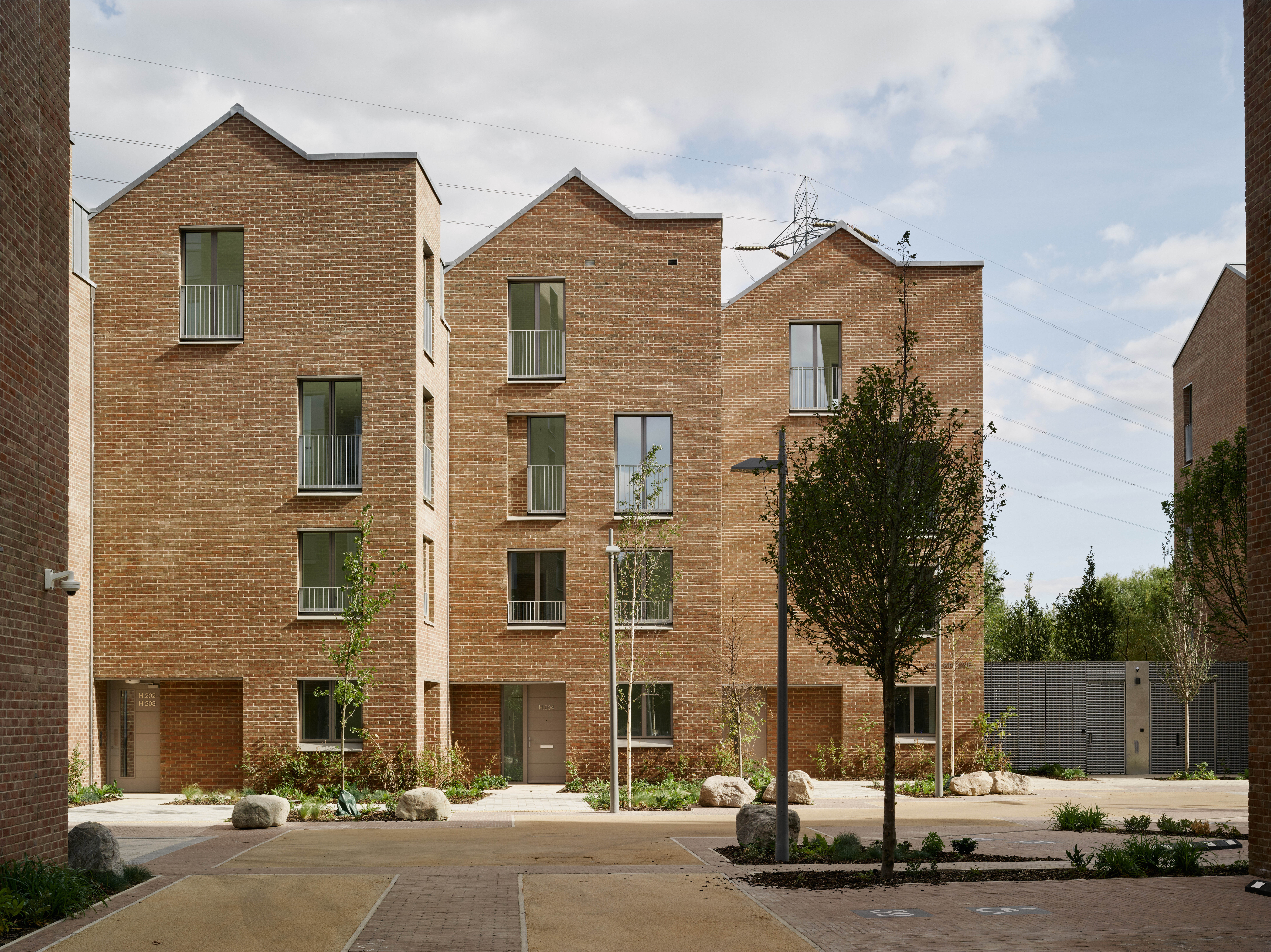 On the northern half of the site, maisonettes at ground and first floor level have their own front doors opening onto the shared landscaped courtyard at the heart of the site, a sheltered setting for outdoor play. All ground floor duplex homes also have private outdoor space towards the water’s edge.