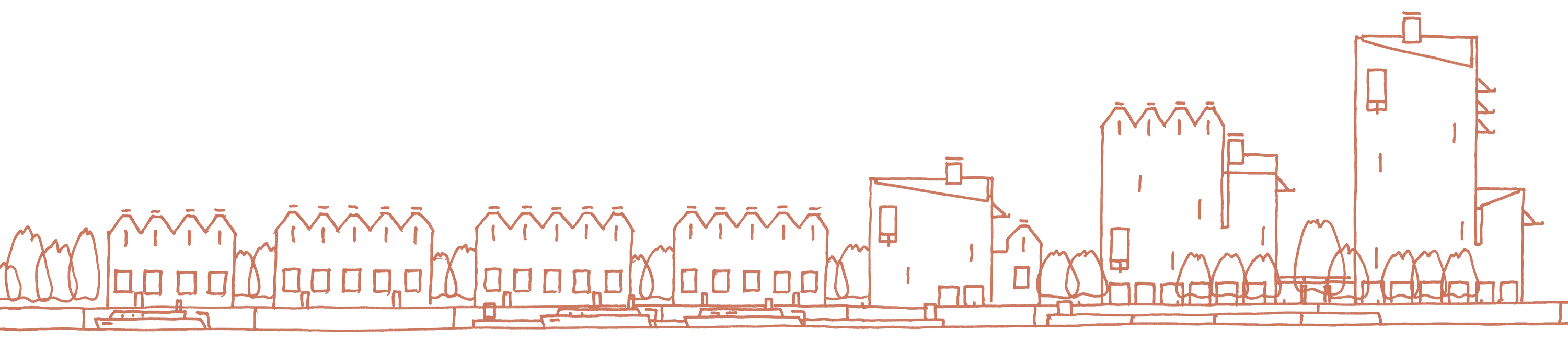 The very narrow site, with various requirements across it for access, the designation demanding high-density and the interstitial location between town and green belt were all challenges that shaped proposals.
