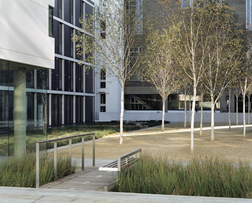 View all projectsThis is one of three new faculty buildings identified within our masterplan for Cambridge University's Sidgwick site for the Arts and Humanities. Enclosing the fourth side of an open garden courtyard, the linear building links the Faculties of Divinity, Law and History and provides space for teaching, offices, postgraduate research and the renowned Radzinowicz Criminology Library. The white, pre-cast concrete panels and dark grey aluminium cladding establish a relationship between the facades of the Law Library by Foster + Partners, and those of Hugh Casson's original Raised Faculty Building.