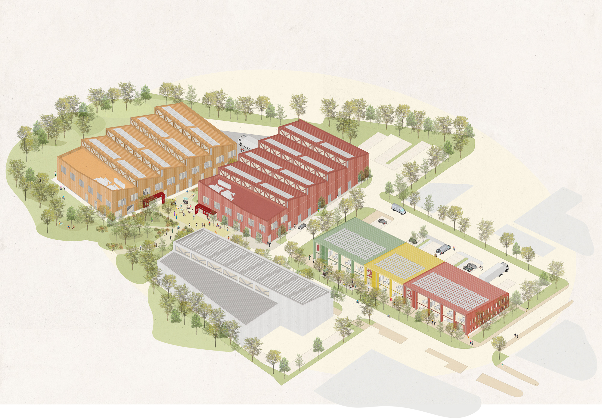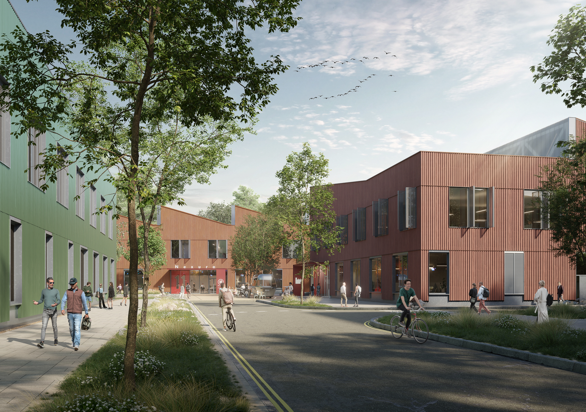 View all projectsTransforming the site of a vacant and derelict paper recycling facility on the edge of central Cambridge, this will be the city's first sustainable mid-tech hub, creating 6,000 sqm of flexible workspace designed for research, product development and manufacturing. Two distinctive sawtooth-roofed buildings frame a landscaped pocket park, offering flexible, efficient space for production and innovation. A future phase will extend the campus meeting rising local demand. Rooted in robust industrial character yet refined in detail, the scheme, having now received planning consent, enhances its surroundings while contributing to Cambridge’s reputation as a global centre for science and technology.