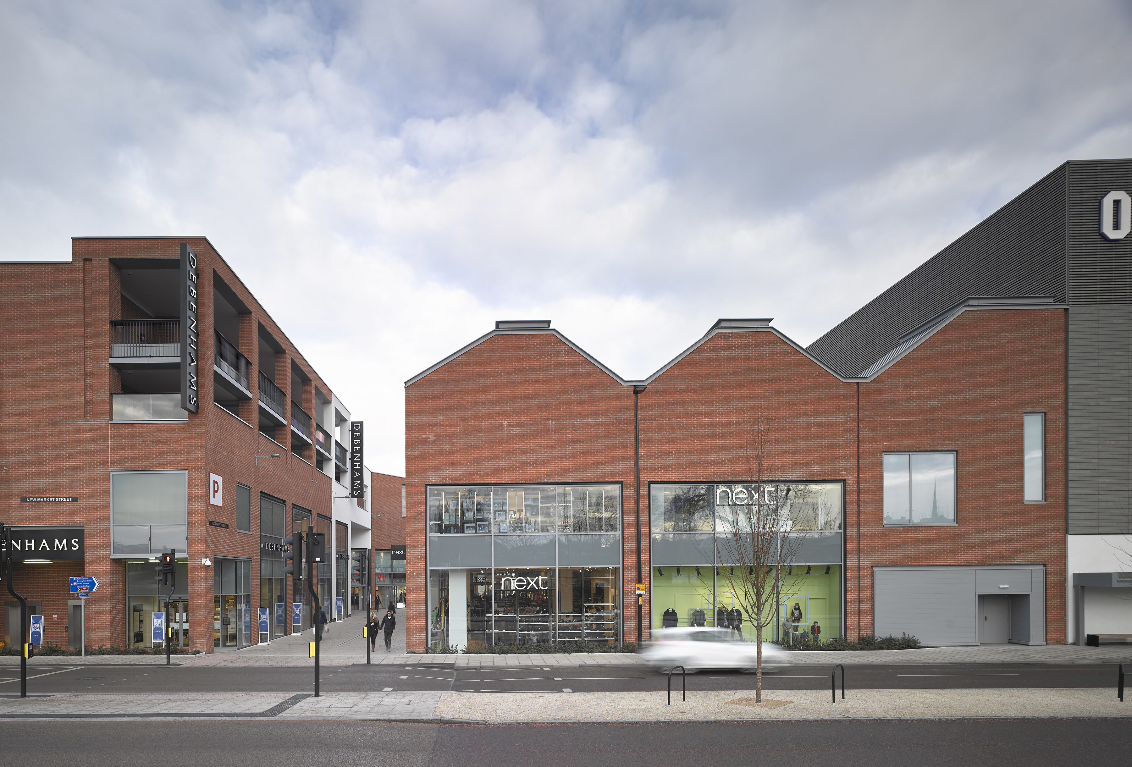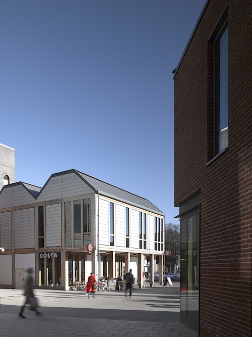 View all projectsThis new quarter develops the site of Hereford's old livestock market and extends the medieval urban structure of Hereford with new streets, spaces and buildings designed in proportion with the city's historic urban townscape. The scheme, designed by Allies and Morrison in collaboration with Leslie Jones Architects, includes a cinema, a food store, a department store, restaurants and retail units serviced by a new city car park. Hereford's inner ring road, Newmarket Street, had previously isolated the site from the centre; its character has now been transformed from an urban highway to a city street by new surfaces, generous crossings and trees.