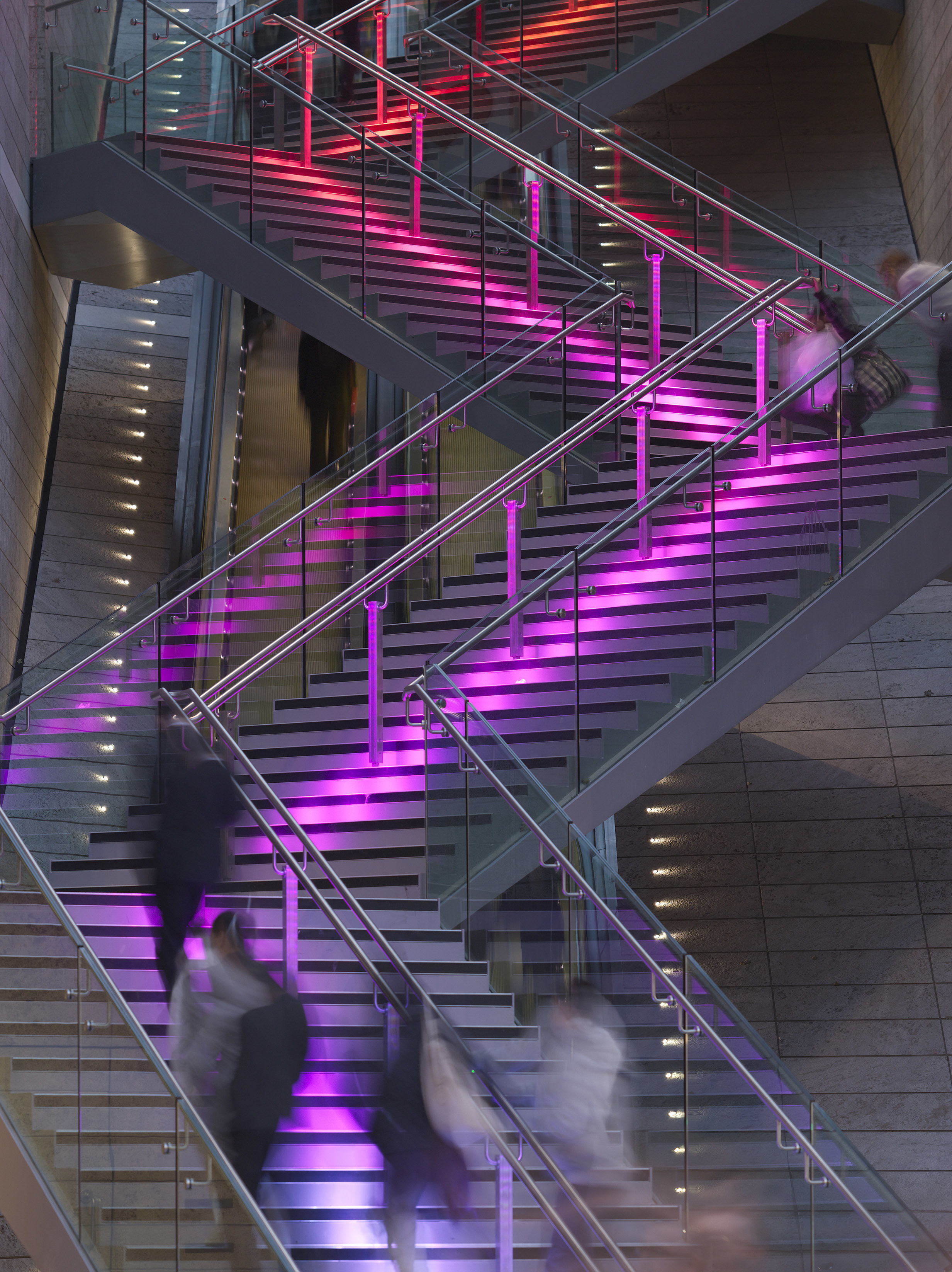View all projectsParadise Street lies at the heart of Liverpool One - a major retail, leisure and residential development intended to spearhead regeneration of Liverpool's city centre. Occupying an entire urban block, the building plays a key role in establishing a new street pattern which integrates with the surrounding urban fabric and generates an important new pedestrian route linking the city to the river. A dramatic sequence of escalators and zigzag stairs takes visitors from ground to third floor level - to a semi-external cinema foyer above two floors of shops and a west-facing terrace lined with restaurants. A clear distinction is made, both in material and scale, between the three masonry facades that face towards the city and the faceted glass bays that address the park.