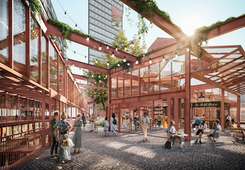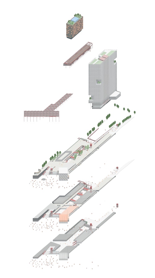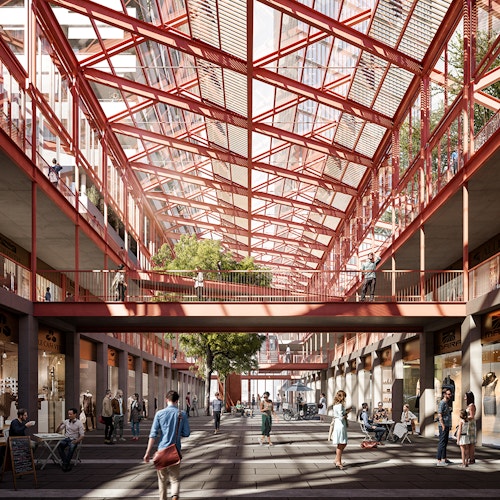 View all projectsOur proposals, runner-up in an invited international design competition to reimagine a 1960s-era retail area, mandated four key principles. Connect: open up this introspective city block. Reinvent: upgrade from a monofunctional place of consumption, to a connected community resource. Diversify: introduce future flexible new uses including hospitality and new homes. Green: replace concrete with landscape that creates habitats, produces food and contributes to wellbeing; and design according to circular principles. Most of the existing building is maintained while a phased series of interventions references traditional Parisian arcades, generating a variety of new spaces that blur inside and outside.