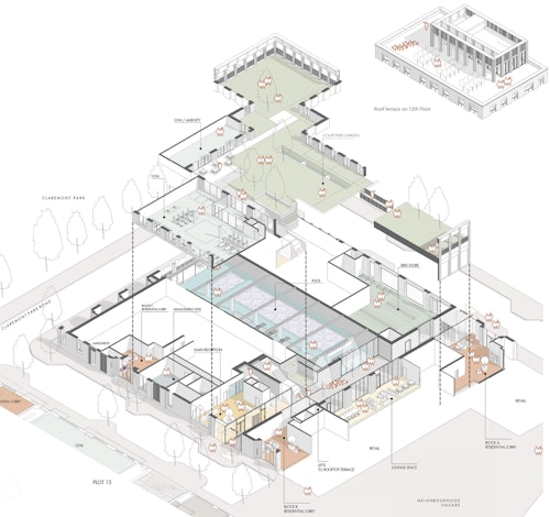 View all projectsPlot 14 is a hybrid residential block at the heart of Brent Cross Town. Sitting between Neighbourhood Square and Claremont Park, it is composed of three buildings that will provide 286 new PRS homes ranging from studios to 3-bed units along with three maisonettes on ground floor. Flexible retail units line Neighbourhood Square to the north whilst at podium level there is a communal gym, amenity room and courtyard gardens for the residents to enjoy.
