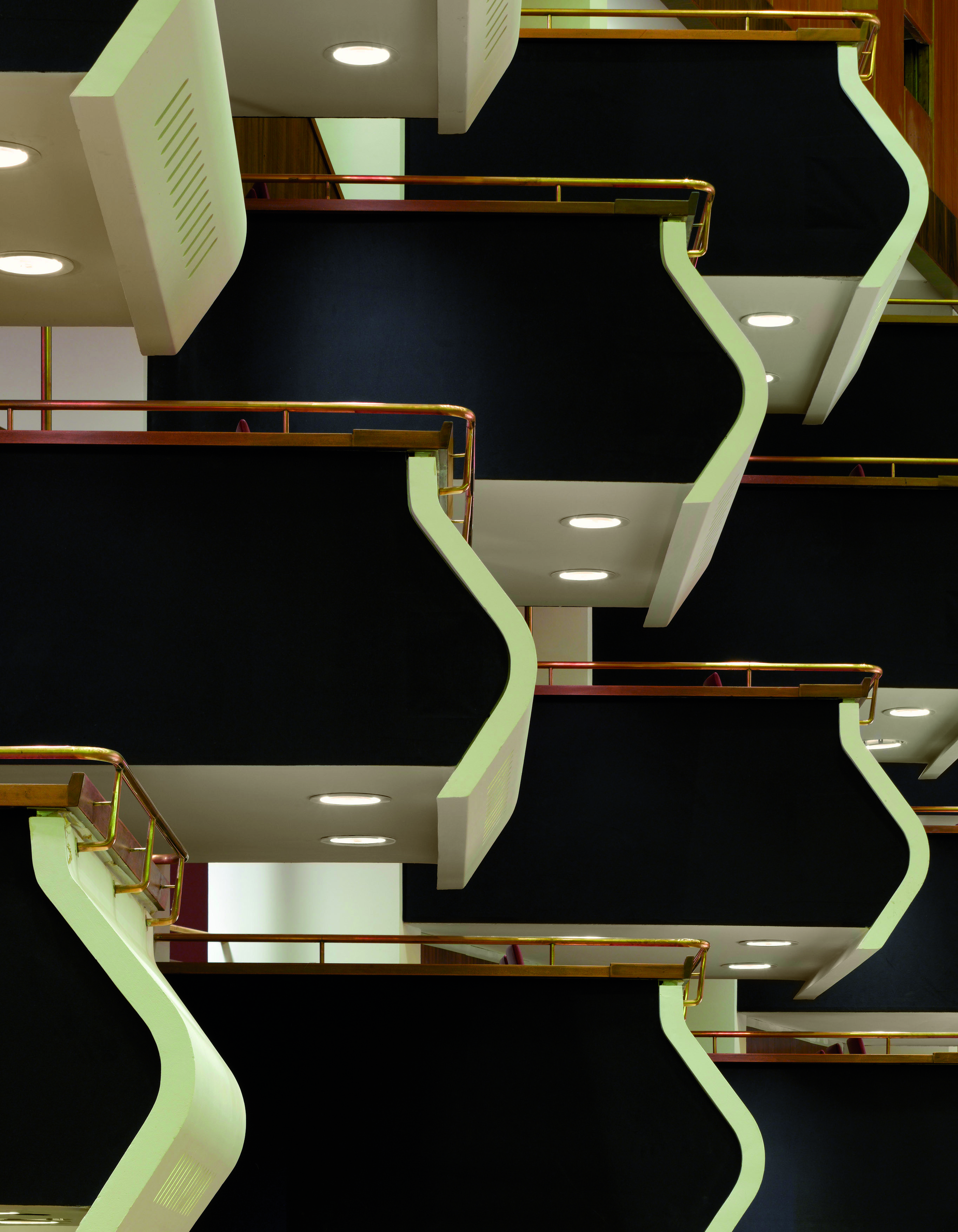 Inside the building, a series of works tackled the acoustic issues. The auditorium was stripped back to the original concrete box and all finishes fixed firmly to this to extend the reverberation time.