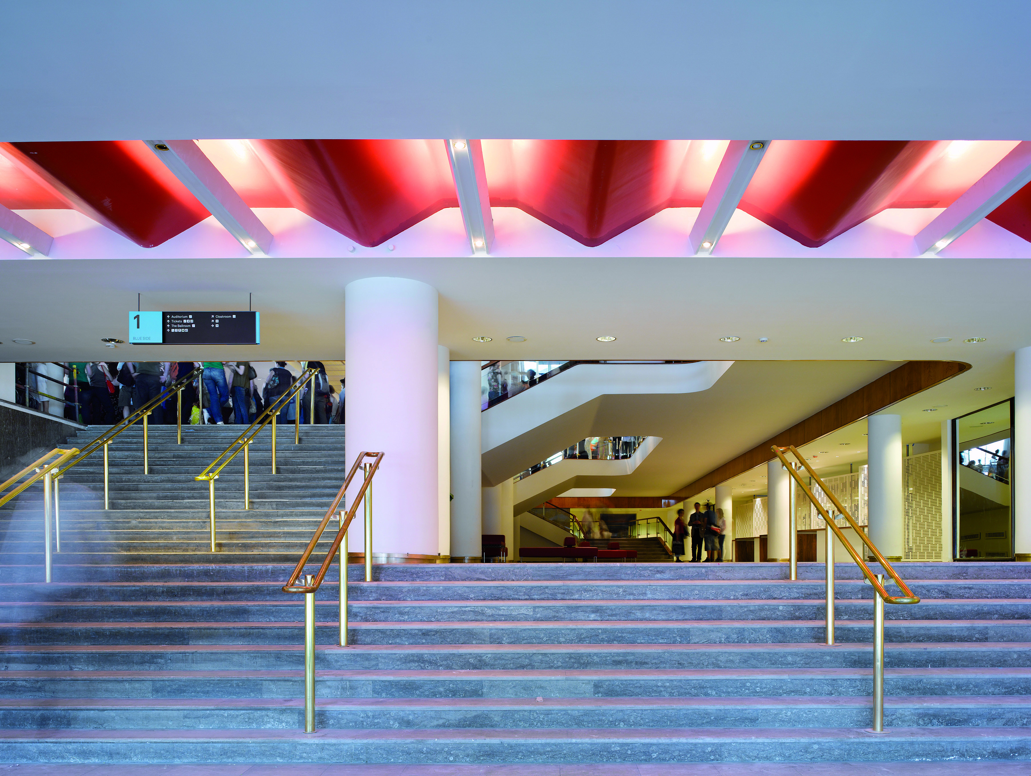 To increase audience comfort, the space between seat rows was extended by 75mm by rebuilding the concrete floor of the stalls, with a loss of only 118 seats. Cooling was introduced by reversing the airflow in the auditorium.