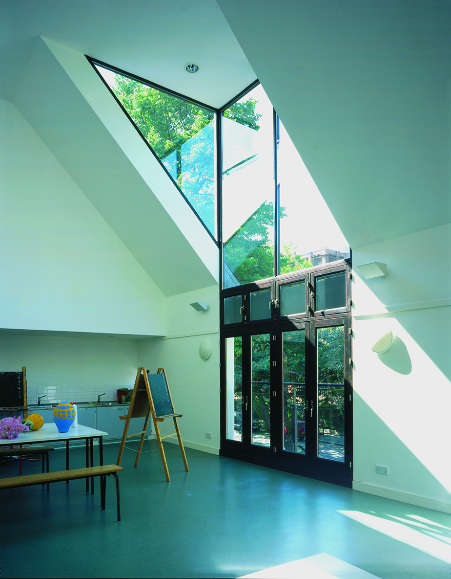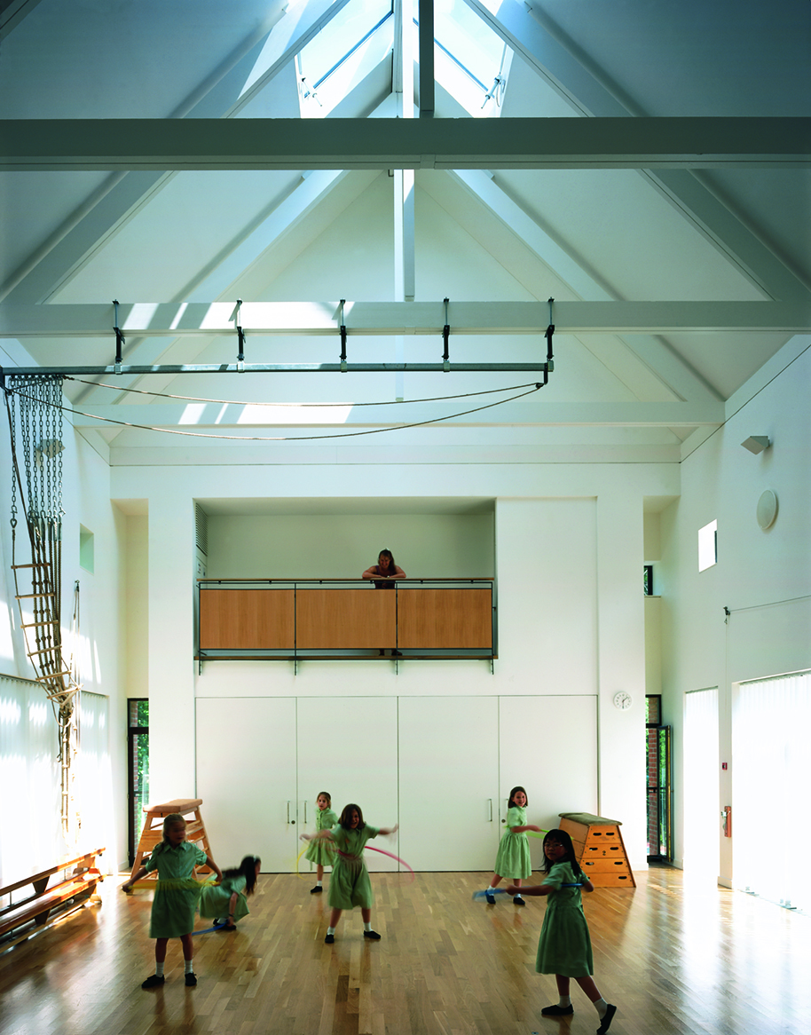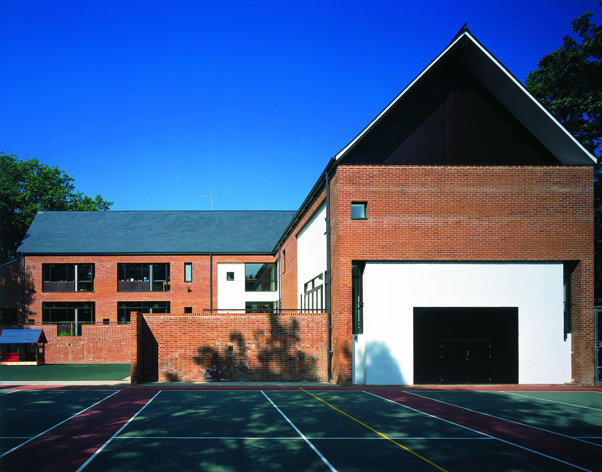 View all projectsSarum Hall is a small, girls' preparatory school. After sixty years of operation in a converted Victorian house, it moved, remaining on Eton Avenue, to this new larger and better equipped building in 1995. The cohesiveness and intimacy of the original school has been recreated by focusing activities around a central stair hall. Classrooms are placed to the rear of the site, while the more individual spaces - the hall, dining room, science and art rooms - are located along the street to produce an appropriately rich and varied elevation to the avenue of late nineteenth-century houses. The school is built largely in red brick, punctuated by recessed panels of white render which express the main interior spaces and highlight entrances.