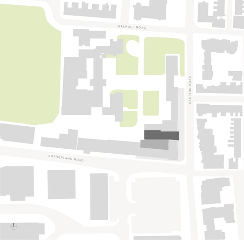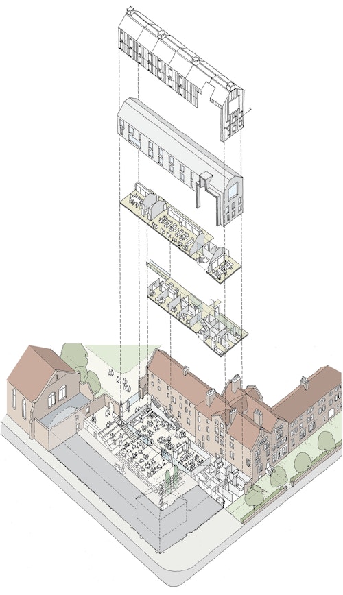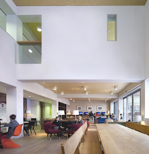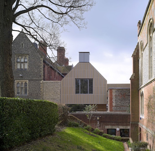 View all projectsThis linear building provides a mix of administrative, academic and social facilities for staff and students at Brighton College. Adjoining a listed 19th-century boarding house, it transforms a rather scruffy 'left-over' space on campus, defining the edge of a new formal courtyard. A double-height cafe and entrance space negotiate the storey-height change in level between the courtyard and the school's main quadrangle to which it is linked by a flight of broad steps. Inside, a dramatic top-lit stair and circulation space connect the new structure to its neo-gothic neighbour providing access to new classrooms, offices and the school health centre.
