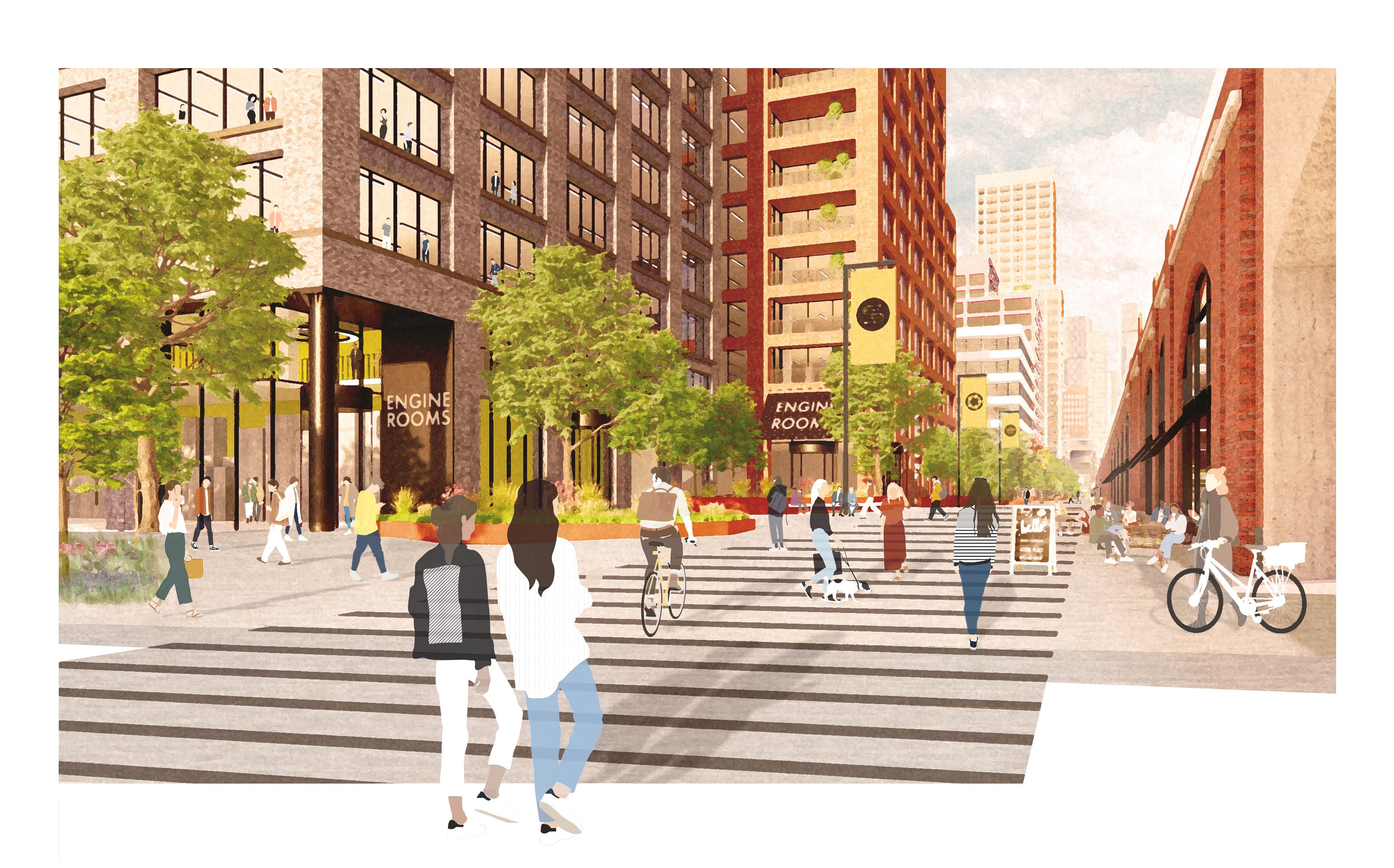 View all projectsManchester’s new innovation district will power the growth of Manchester’s knowledge economy while unlocking the potential to commercialise research and development in the heart of the city. Rooted in context and history, our masterplan will be an important fusion of heritage assets, with the Sackville Street and Renold buildings repurposed, and new buildings and landscape all contributing to a special urban character. Connections and routes will make a previously closed off campus open and accessible to all while a living landscape will significantly increase biodiversity and boost climate change resiliency. 240,000 sqm of workspace, over 1,500 new homes and significant investment in the public realm will create a welcoming, dynamic, low-carbon neighbourhood.