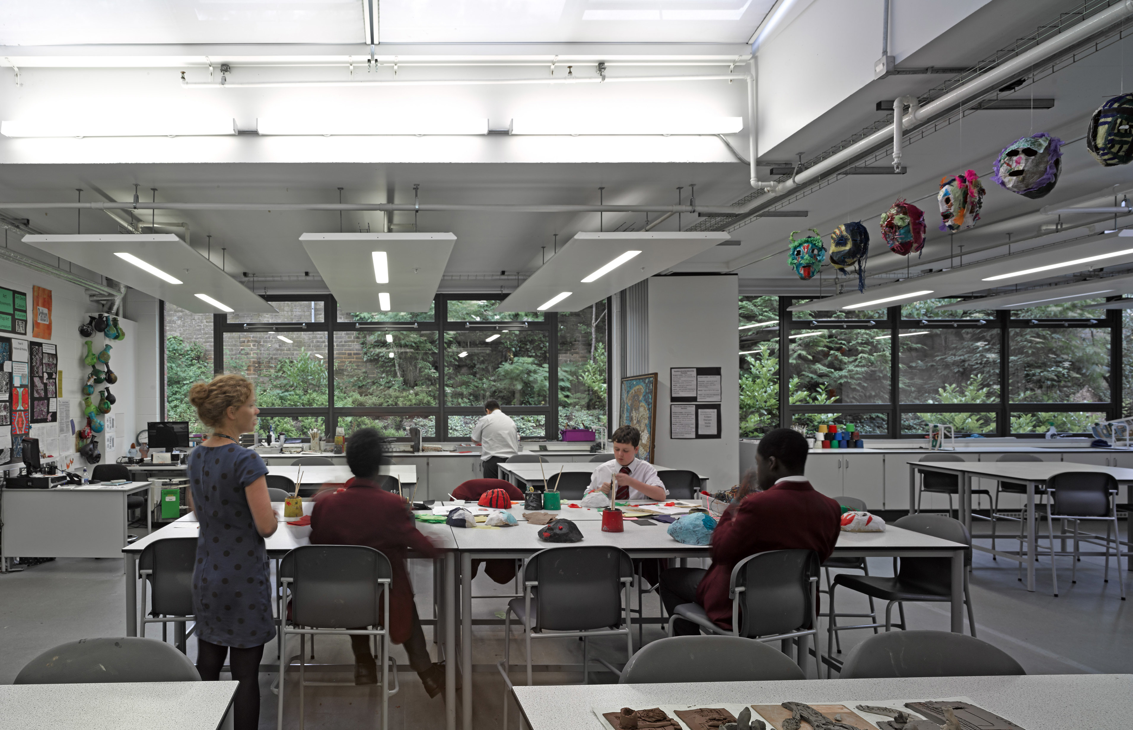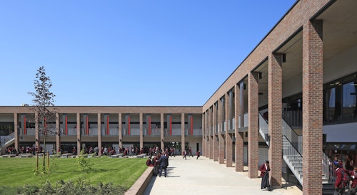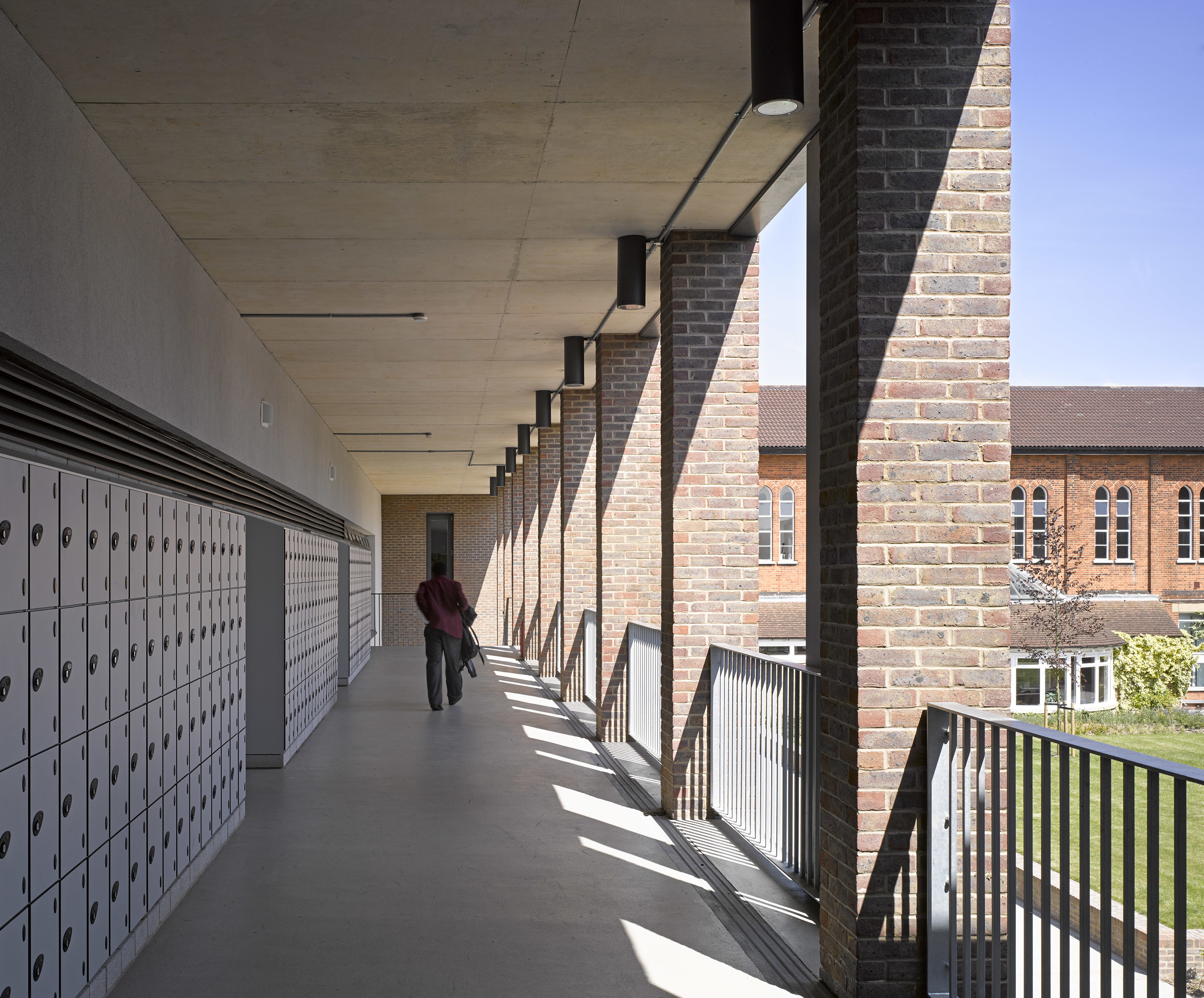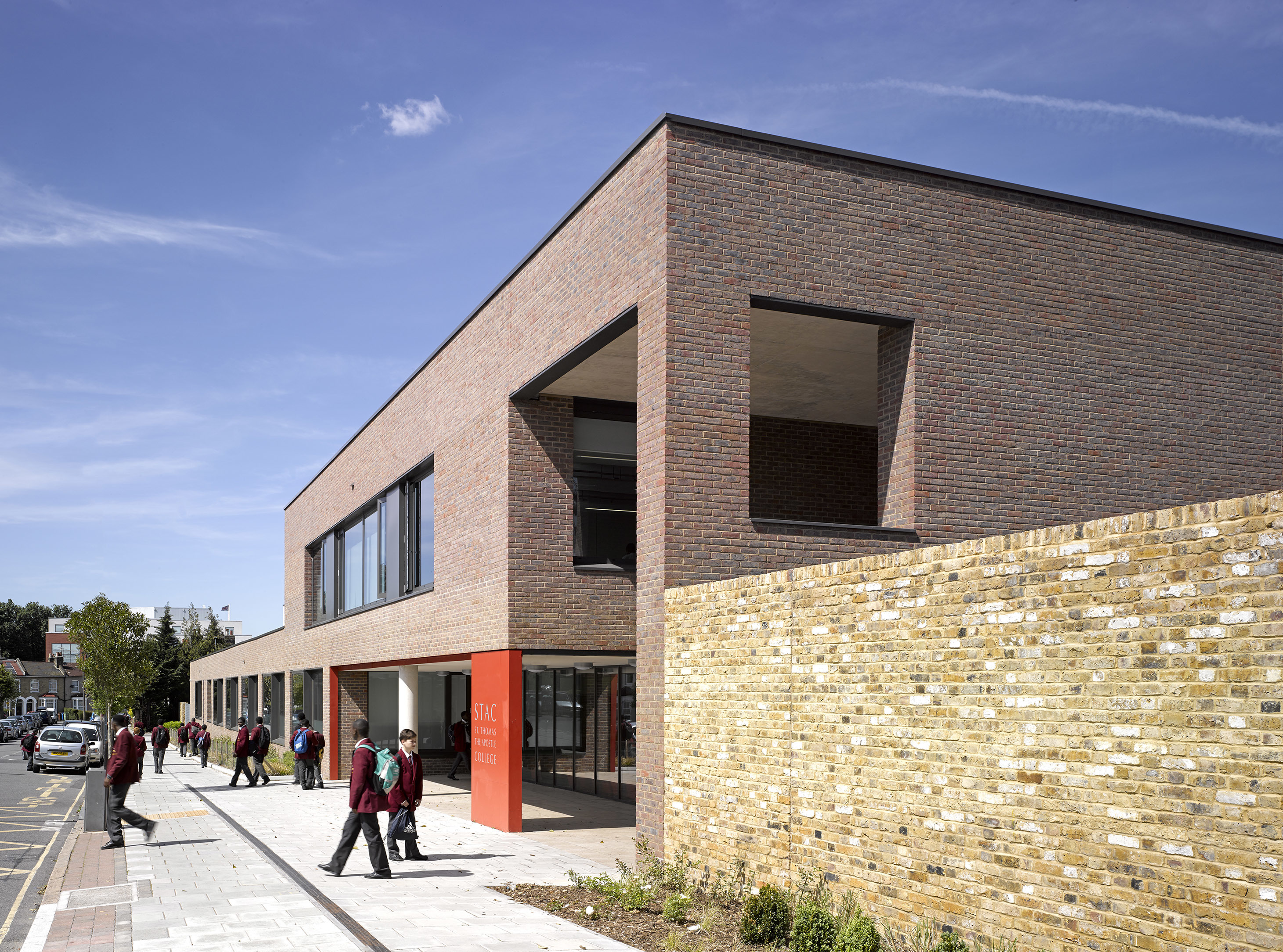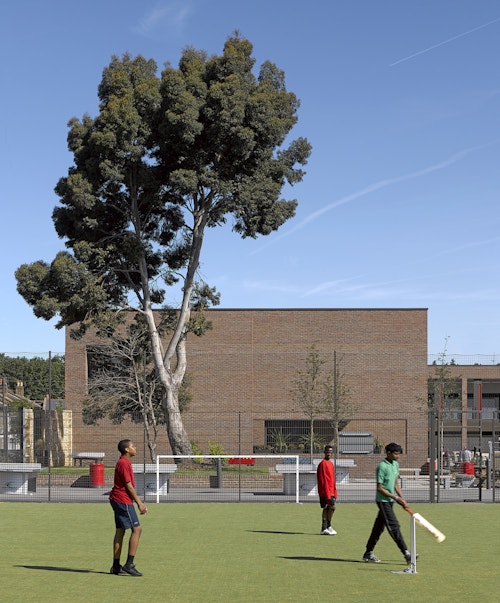 View all projectsThis Catholic secondary School for boys in Nunhead, South London was redeveloped as part of Southwark's Building for Schools for the Future programme. The design retains the existing Chapel, Hall building and swimming pool and provides flexible new departmental buildings, laid out to create and enclose a central cloister space wrapped by external circulation at the heart of the school. Essentially a quiet reflective space focused on the Chapel, the cloister is complemented by a new entrance and new facilities for active play, sports, creativity and performance, all of which will also be made available to the community out-of-hours.