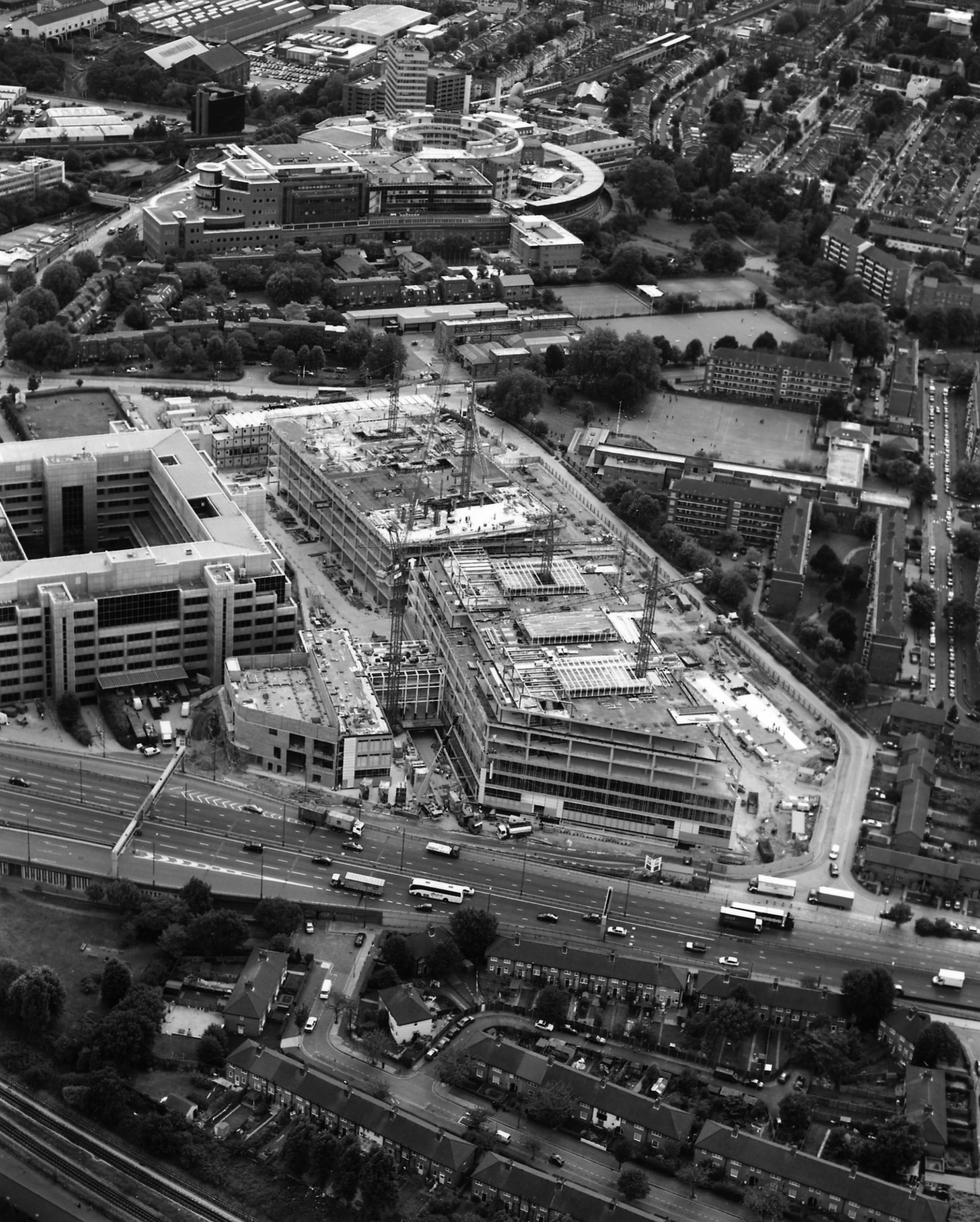 This corner of White City had been synonymous with the BBC for half a century. Thirty years after the iconic BBC Television Centre opened its doors just down the road it was joined by the Corporation's administrative headquarters White City One in 1990. A few years later, a BBC decision to consolidate staff in the capital focused on three major campuses in central and west London, and triggered the brief for Media Village which would see the 6.8 ha White City site ultimately accommodate 6,000 people across 139,000 sqm of broadcasting facilities, leisure, office and retail space, as well as a dedicated energy centre.