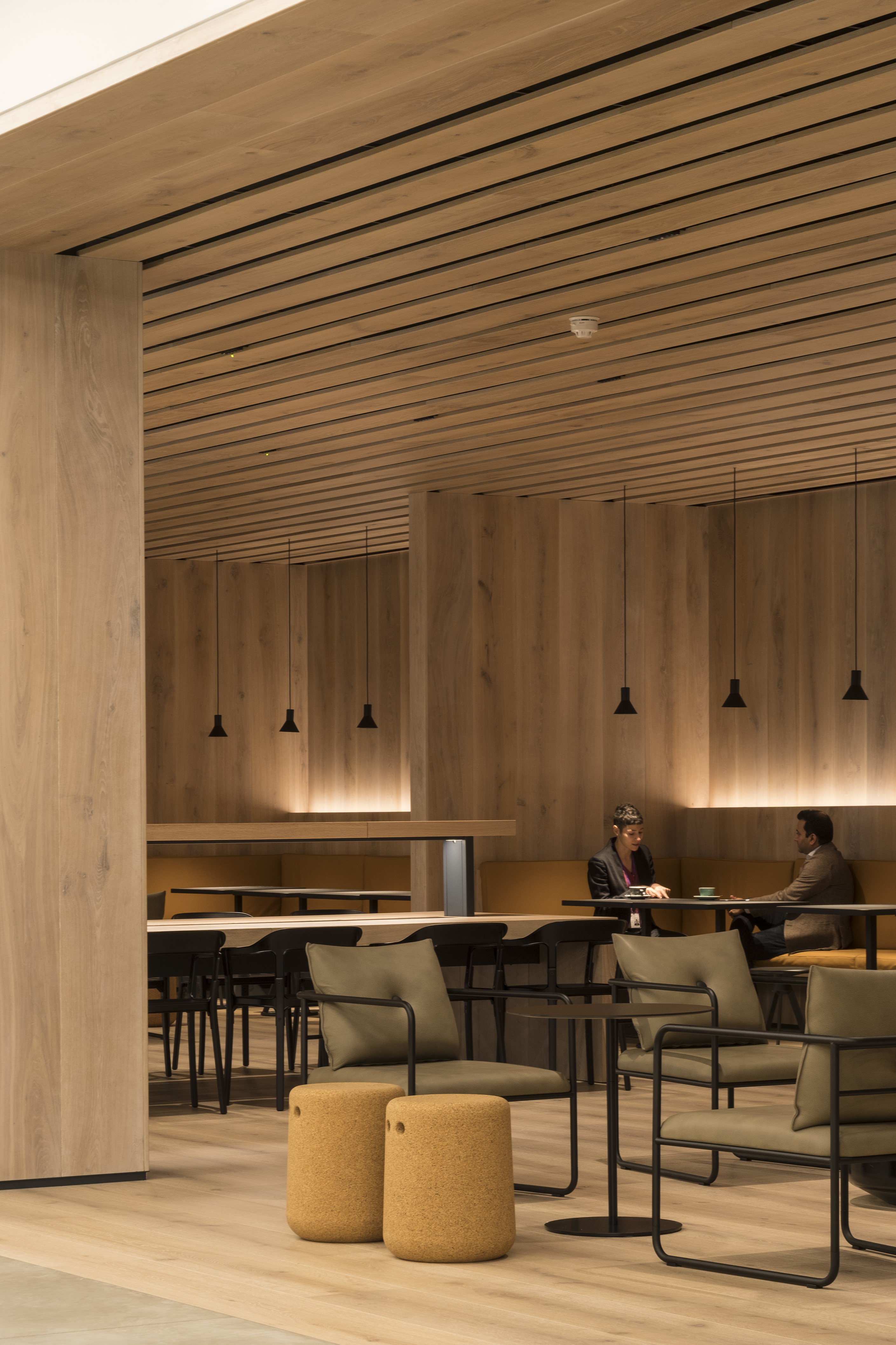 Generous communal and incidental spaces including the building's 43m deep entrance lobby with its set of informal social and work spaces, provide multiple ways for people to meet, mix and work. Also on the ground floor, 'The Studio' is a shared venue with a programme of cultural events open to all tenants and the wider community. Both align with the ethos that permeates White City Place of stimulating and nurturing tenant communities.