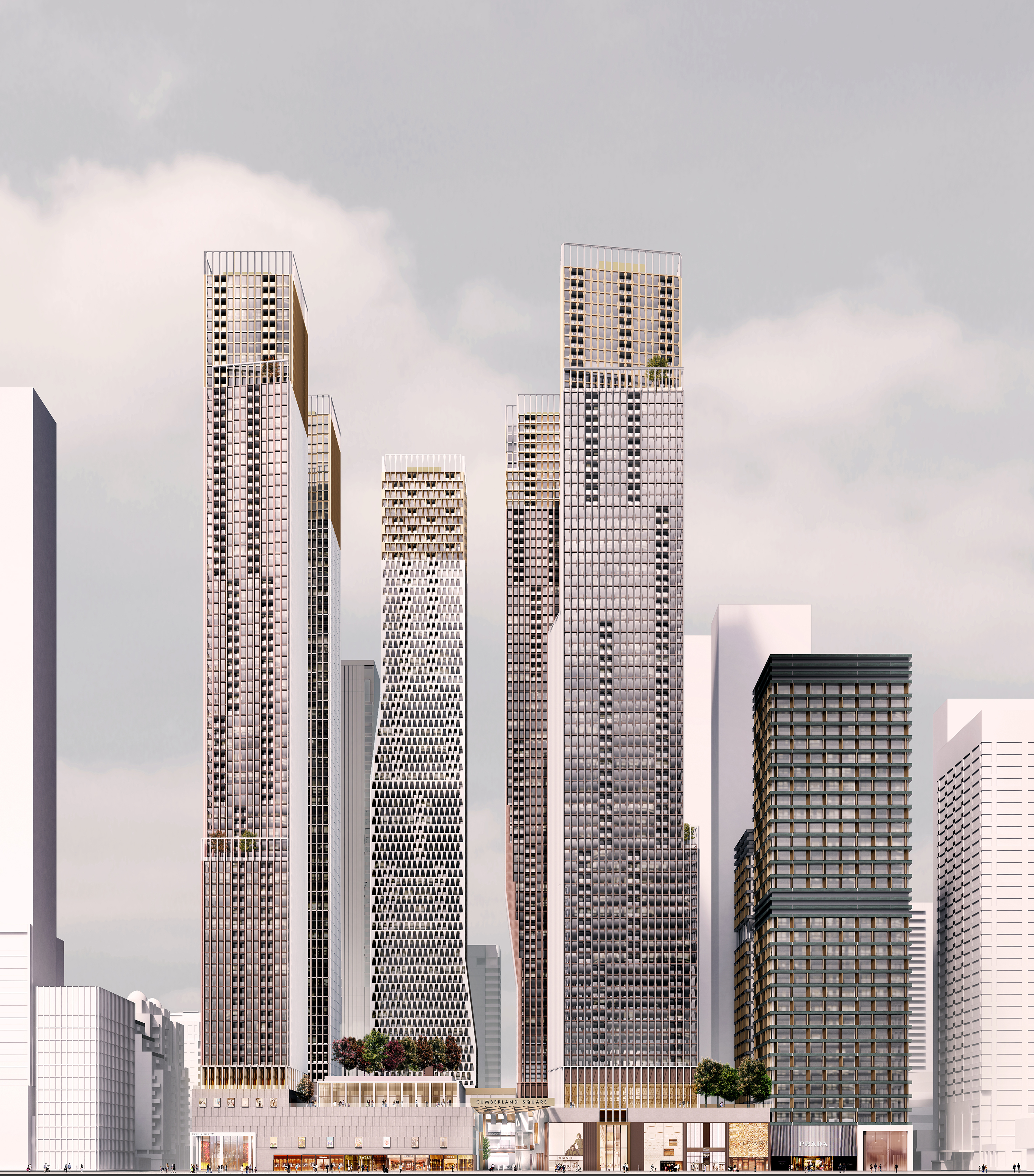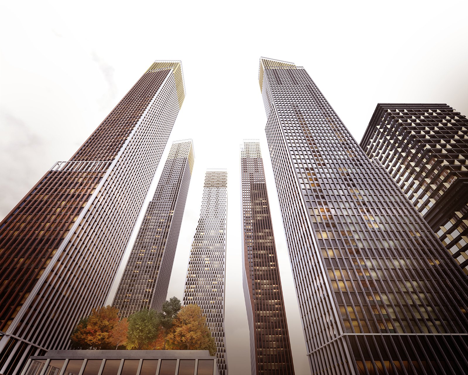 View all projectsThis is a proposal for a major new mixed-use project in Toronto. Situated in the Yorkville neighbourhood, the project is conceived as a signature high density development that brings together a new commercial office tower, five residential towers, a shared podium and a retail concourse integrated with existing public transport infrastructure. At the heart of the scheme sits a covered public square which will knit into the surrounding urban grain. Conceived as a pluralistic icon, the towers shine in the light of dusk and are a contemporary iteration of the golden age of skyscrapers in North America.